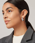 A large, tubular hoop with rounded ends and a custom JB ball backing. Finished in high-polish silver. As seen on Michelle Williams.