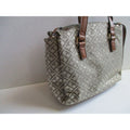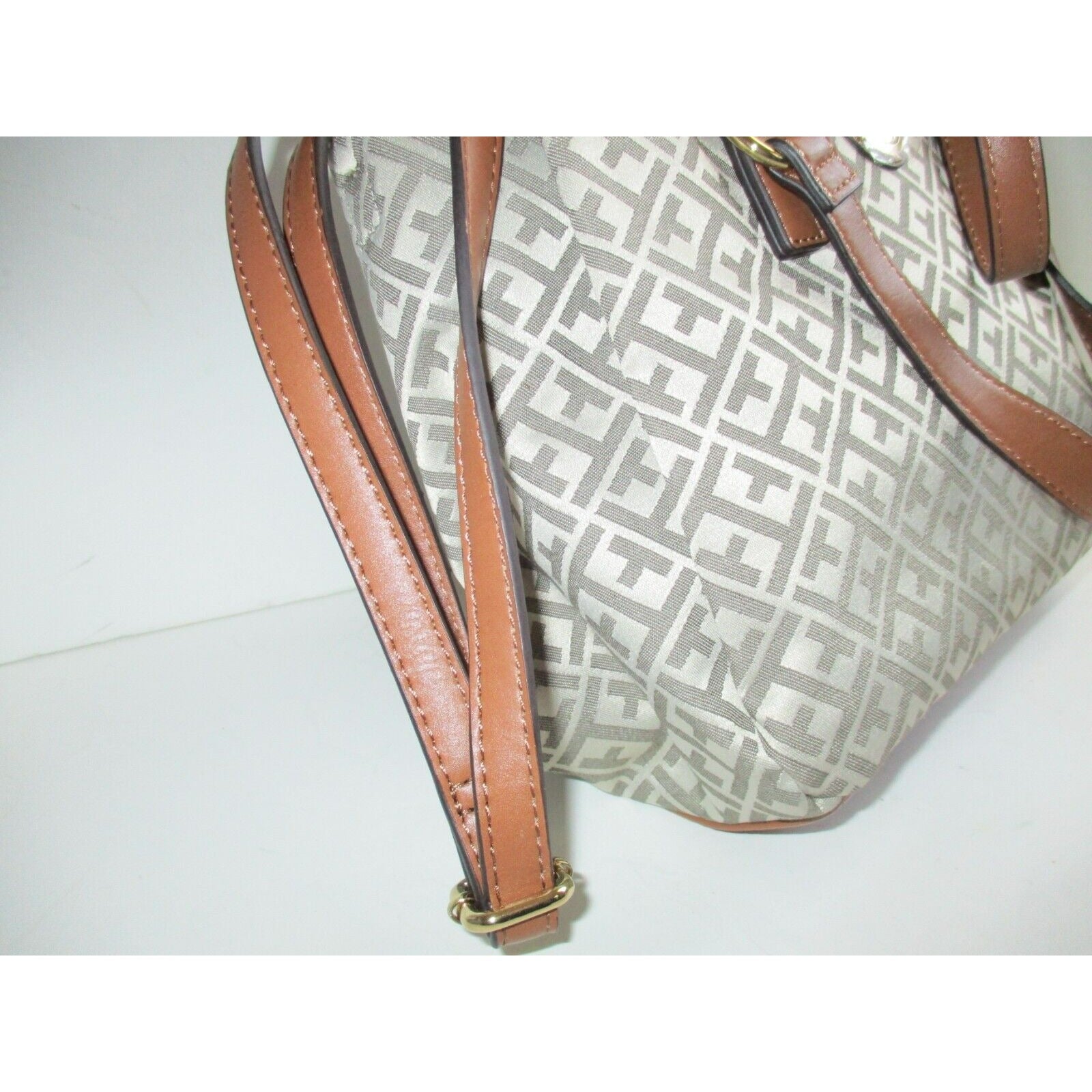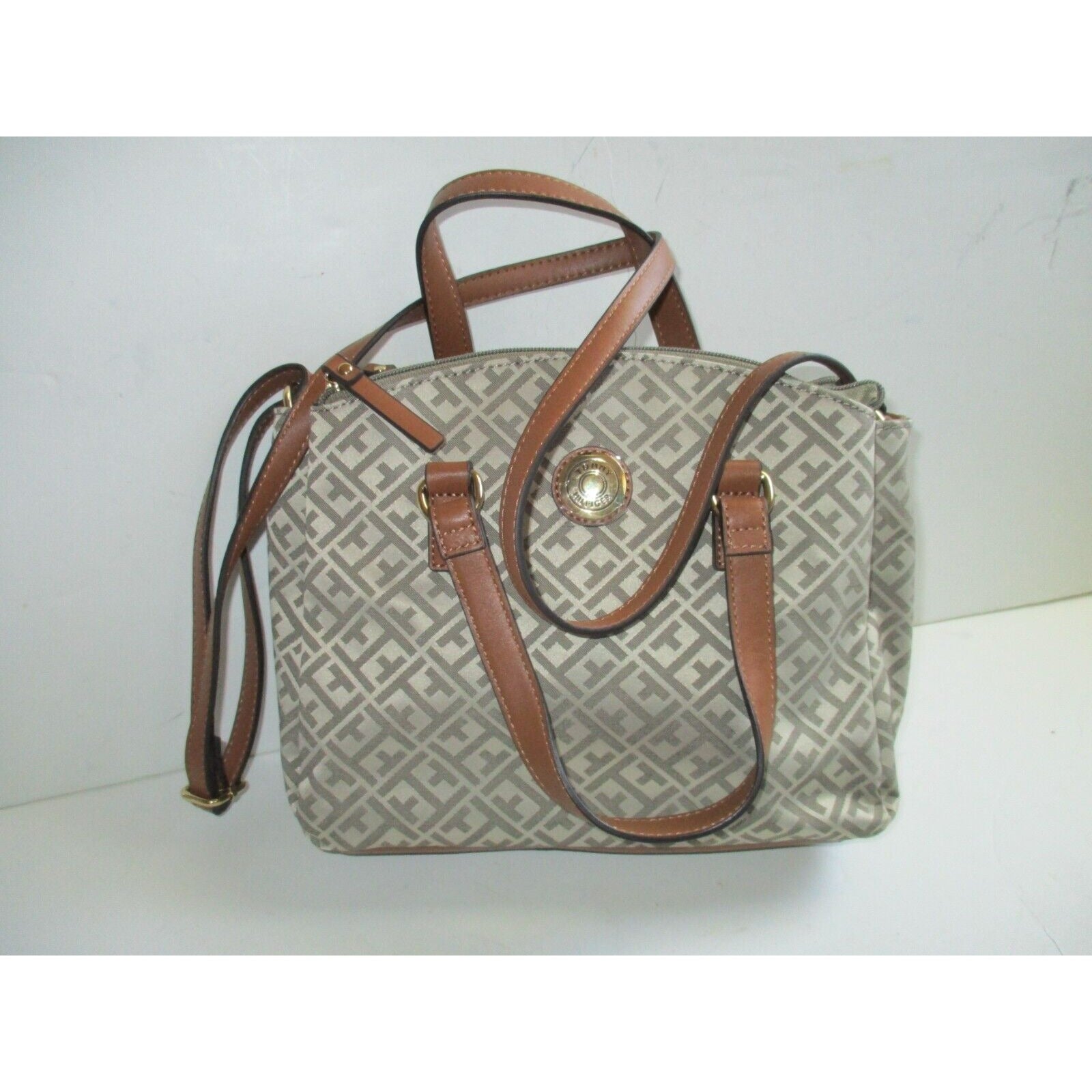Tommy Hilfiger Classic Tan Taupe Signature Canvas Red Logo Two Way Satchel