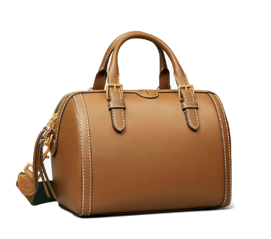 Tory Burch Monogram Two-Tone Barrel Leather Crossbody Bag