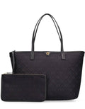 T Monogram is a classic pattern inspired by traditional Pennsylvania Dutch quilting. Meticulously crafted in woven jacquard, the collection speaks to the timelessness of great style. The tote is trimmed in fine leather, with a zip-top closure. Lined in soft microsuede, the interior has pockets for organization. Every detail is considered, with special attention to function and versatility.