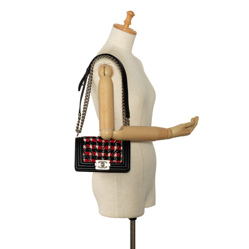 Chanel Tweed Chevron Boy Shoulder Bag Cotton Shoulder Bag in Good condition