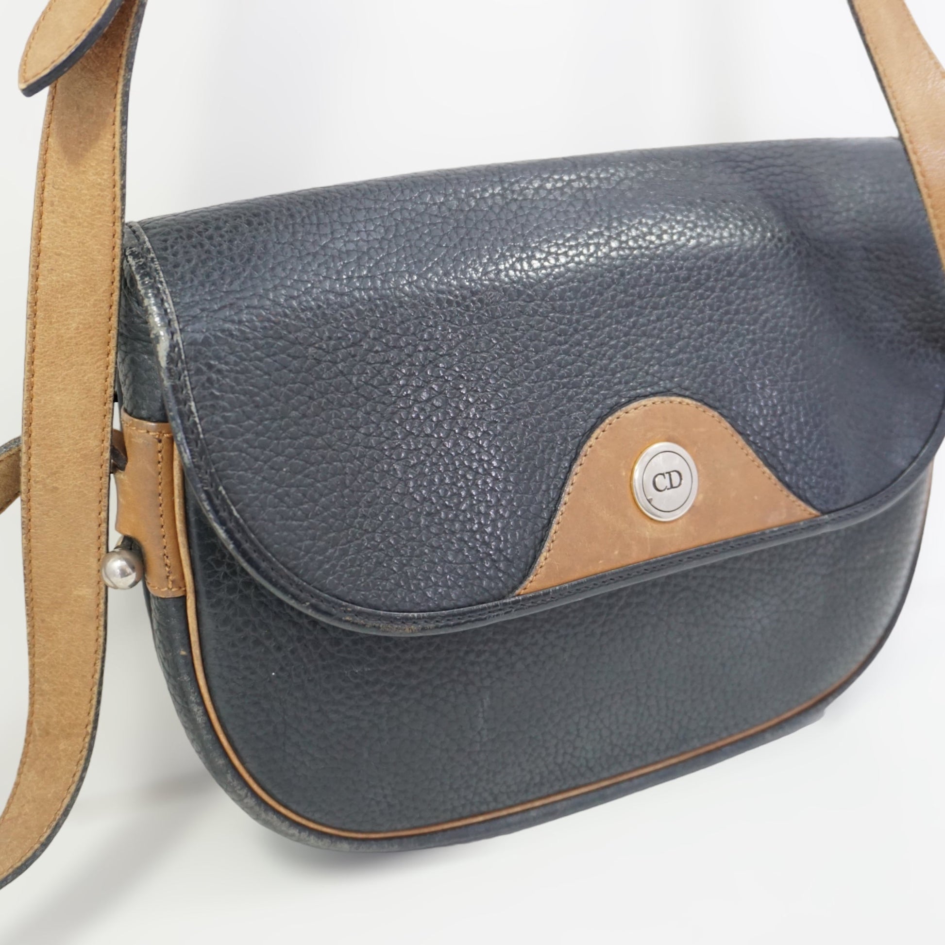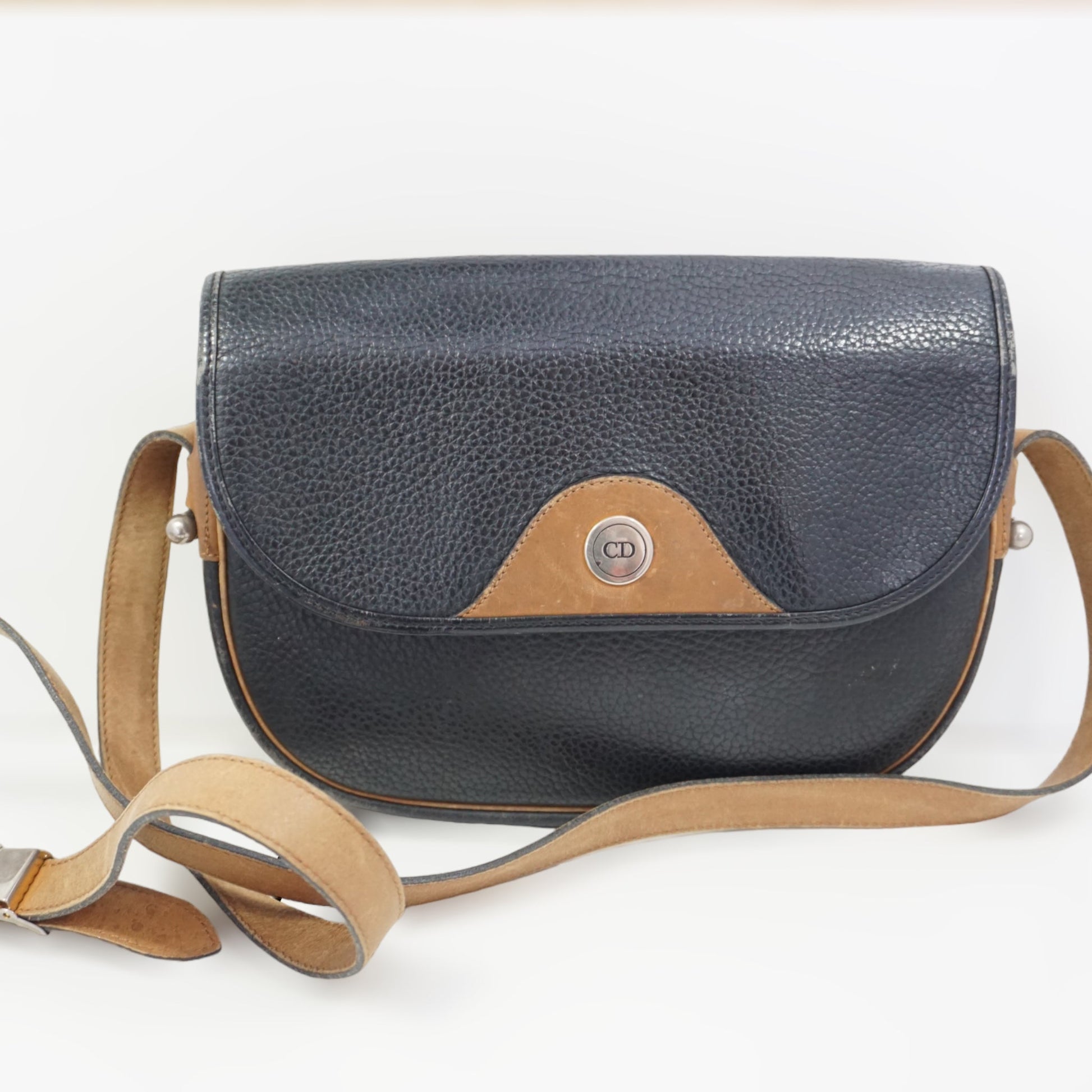 Klassisk Christian Dior crossbodytaske med brun læder skulderrem. Skulderremmen kan justeres i længde