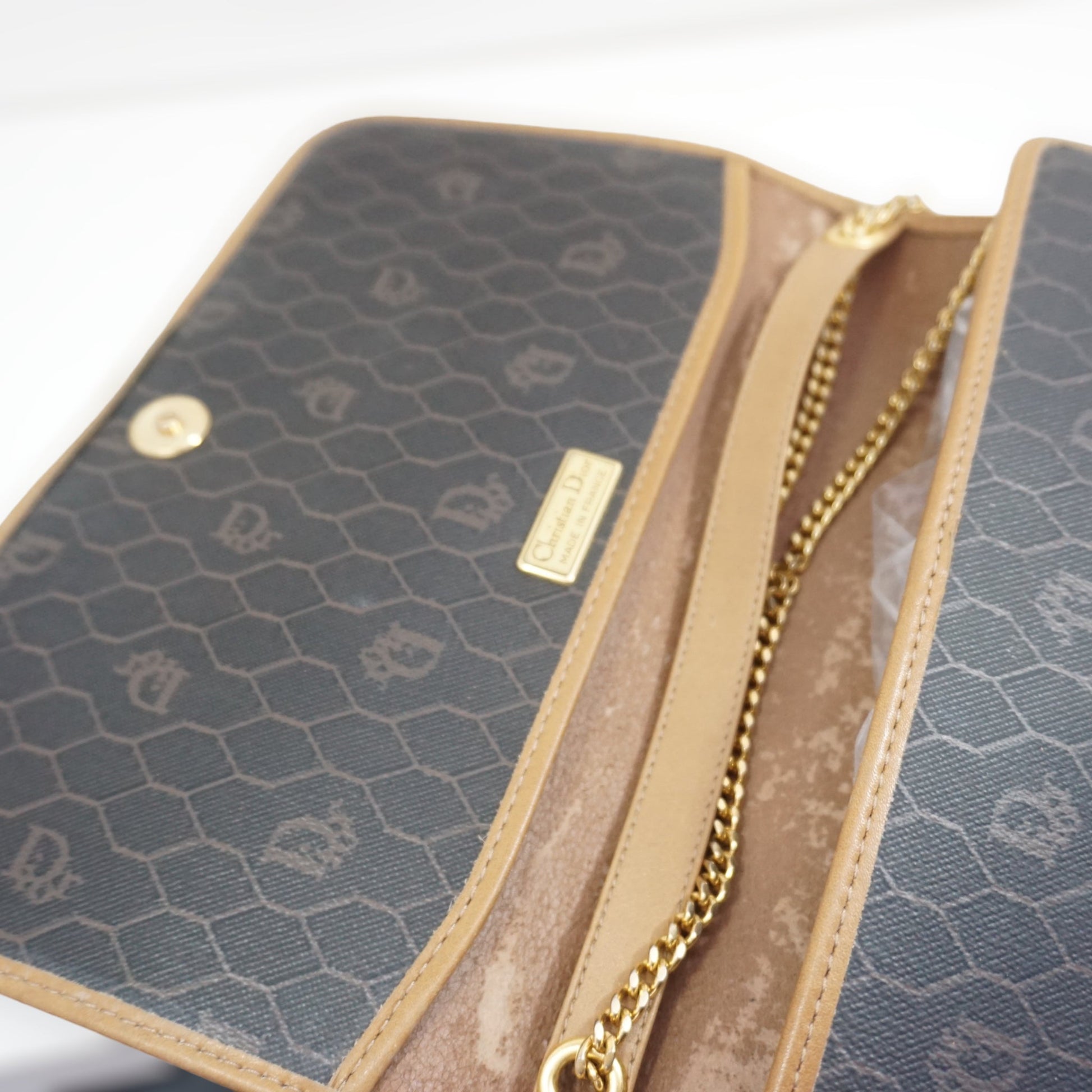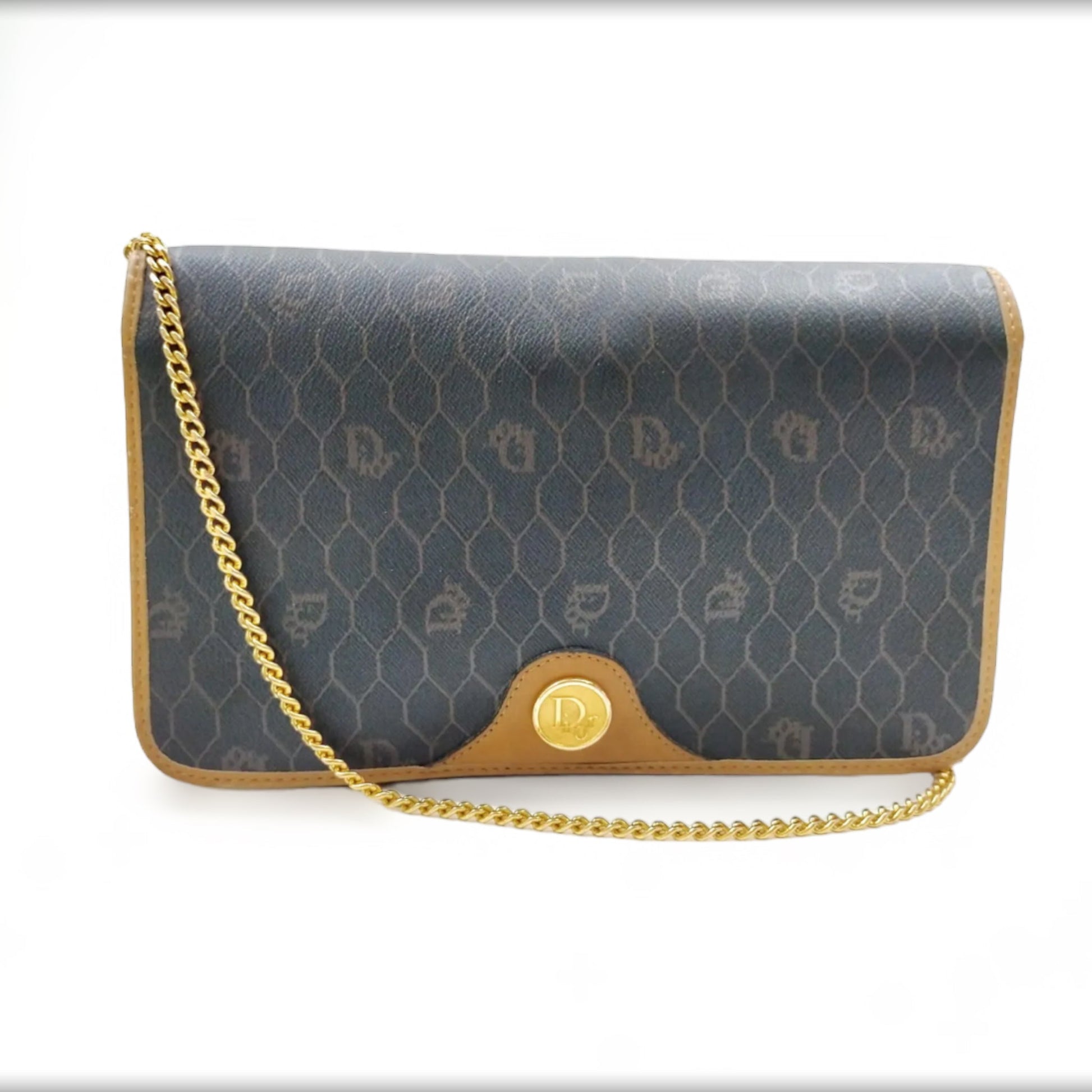 Christian Dior crossbodytaske med guldkæde skulderrem og knaplukning