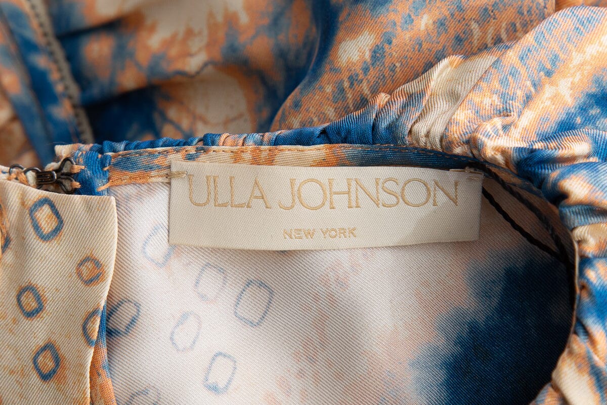 Ulla Johnson Beige/Blue Silk Ruffle Printed Blouse. This item is in good condition.