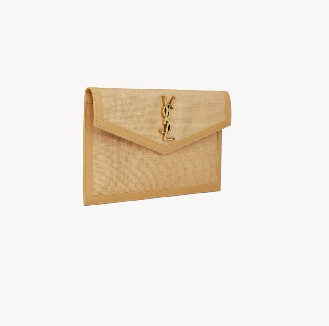 YSL UPTOWN POUCH IN MICRO RAFFIA NATURAL HAY & BLUSHYSL