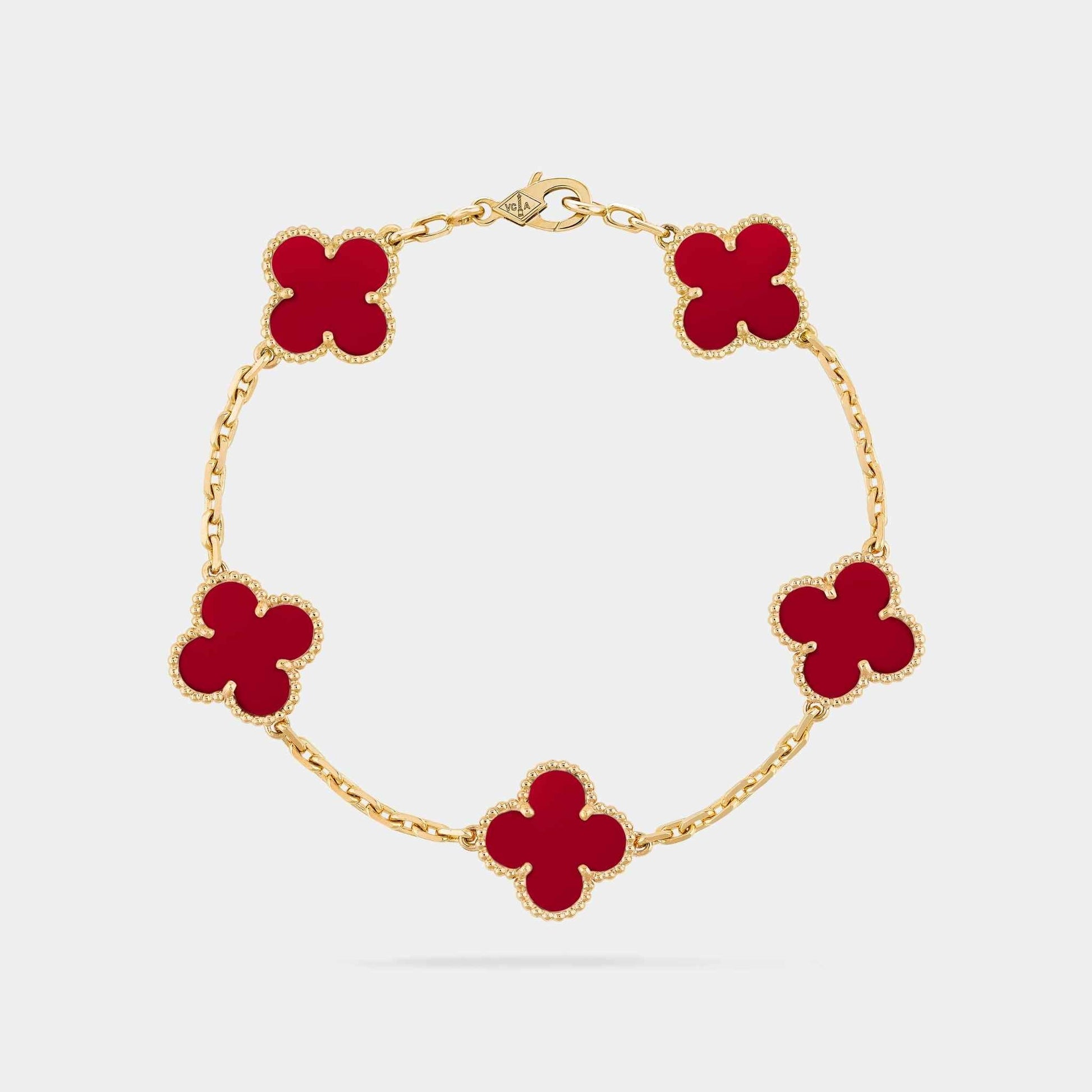 The Van Cleef & Arpels Alhambra Vintage Gold Bracelet with Carnelian is a timeless expression of elegance, perfect for any wardrobe.