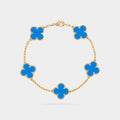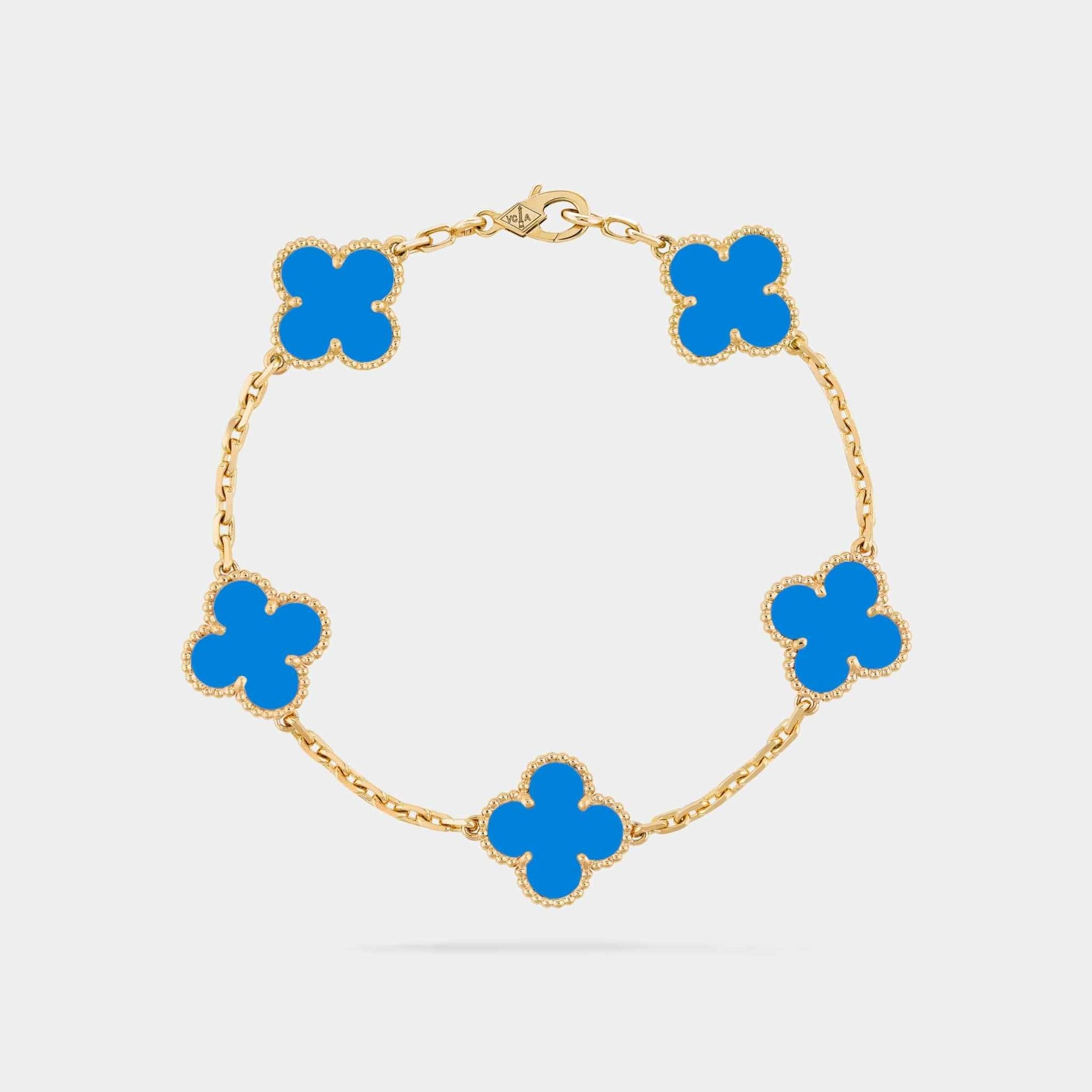 The Van Cleef & Arpels Alhambra Vintage Gold Motifs Bracelet with blue agate is a timeless symbol of elegance and style, perfect for any occasion.