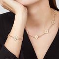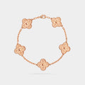 The warm and feminine hue of 18K rose gold enhances the iconic quatrefoil motifs, creating a bracelet that effortlessly adds charm to any wardrobe. The soft rose tones exude a contemporary allure while maintaining the timeless aesthetic Van Cleef & Arpels is known for.