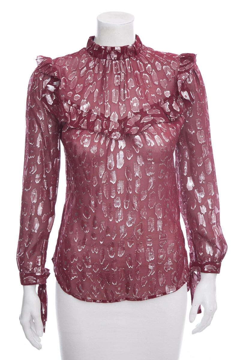 Veronica Beard Marron & Grey Long Sleeve Shimmer Blouse SZ 0
