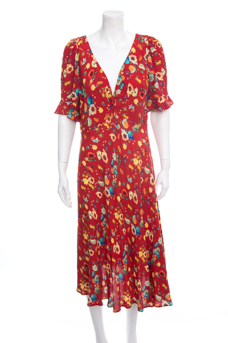 Veronique M Red Midi Floral Short Sleeve Dress. This item is in very good condition.