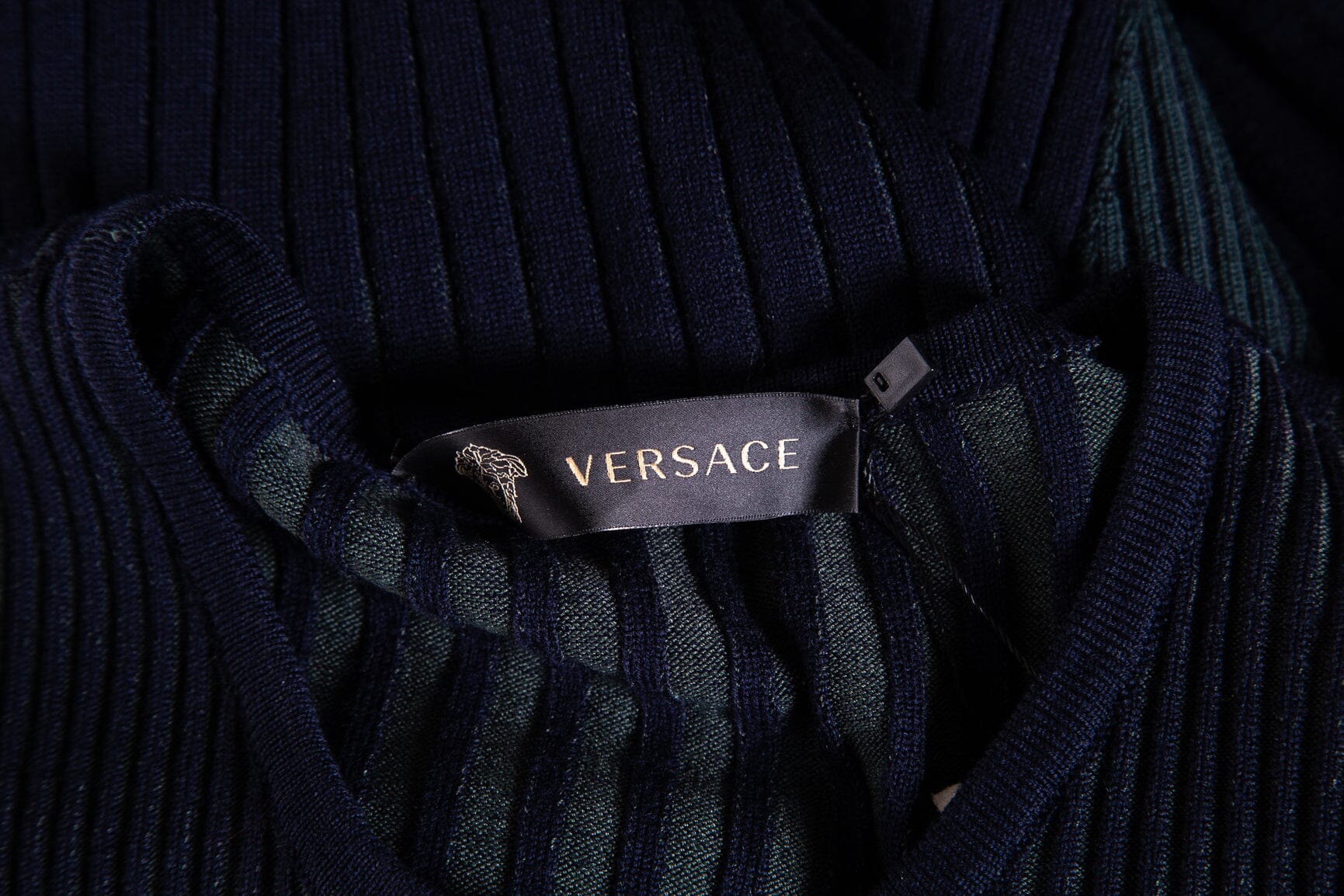 Versace Navy Blue & Green Dress With Shoulder Cut-Out. This item is in good condition.