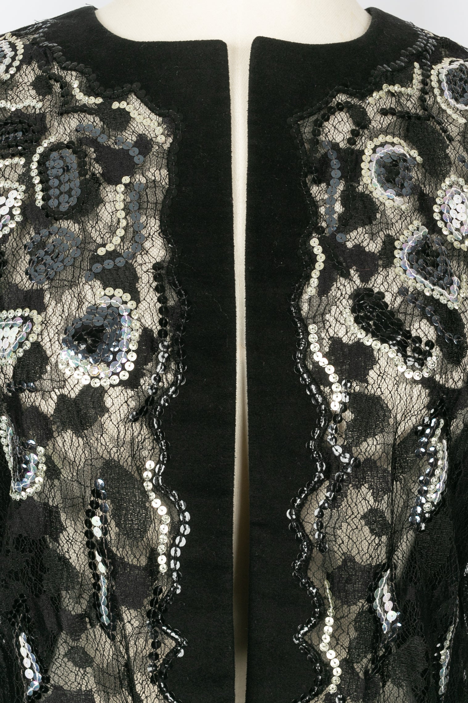 Note: Our Items are totally New High quality Brand Inspired Refurbished. Please make sure you are well aware of it before buying any of the Item. T&C's Apply in case of refunds.Please send us message on below chat to confirm availability. We will send the Refurbished Model in case you place an order with us. Enjoy Shopping.Always Send Us message to confirm availability before buying, In case of refund the transaction fee remains non refundable.�Thank�you. Veste en dentelle noire brod�e de paillettes bleues et argent�es. �tiquette de composition et taille indiqu�e 40FR, correspond � un 36/38FR. Collection Automne/Hiver 2001.