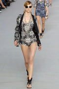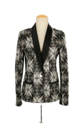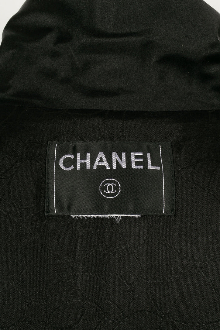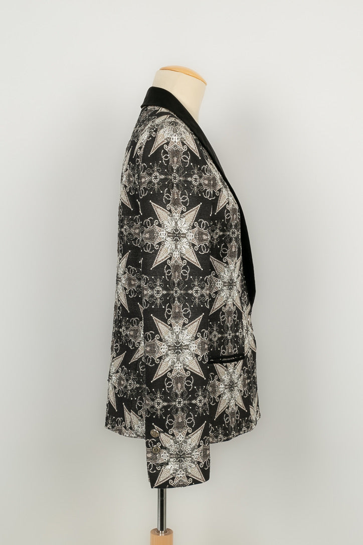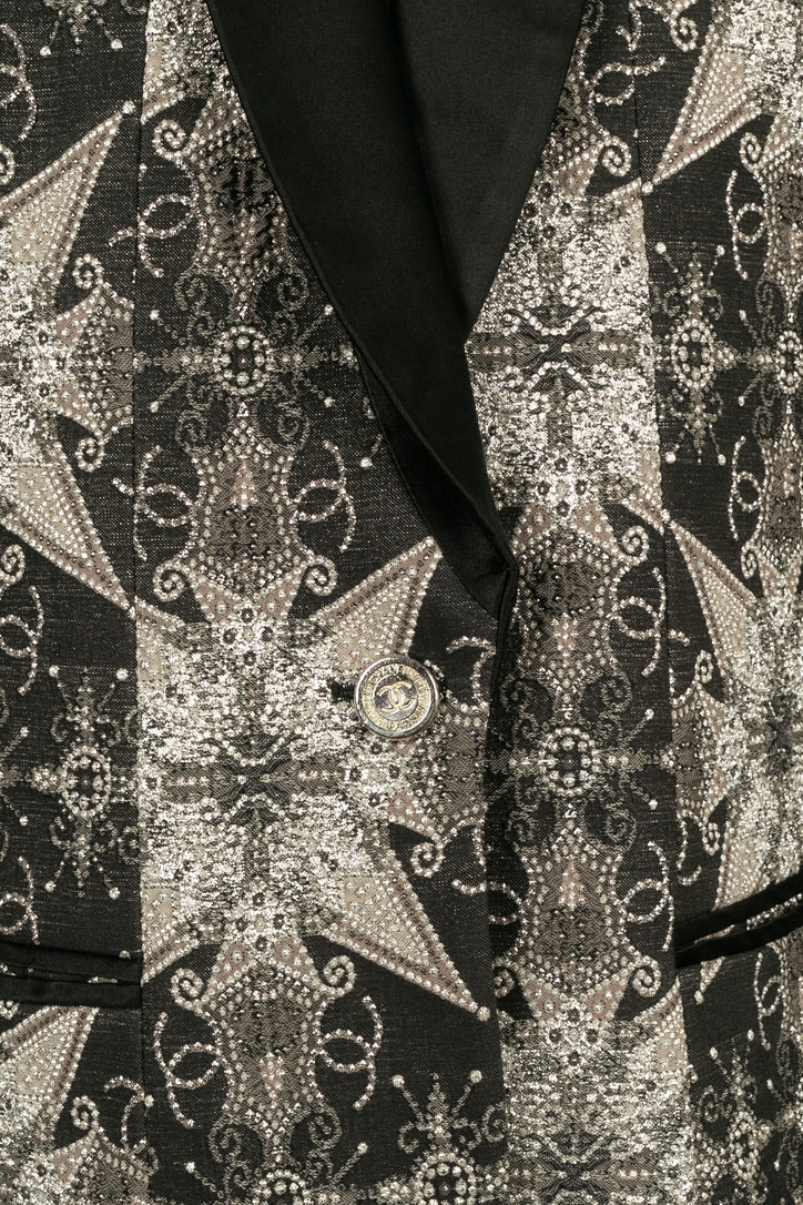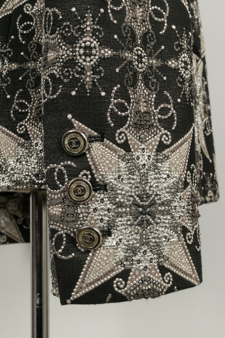 CHANEL -Veste en brocard de soie noir et argent�. Doublure en soie. Aucune �tiquette de taille ou de composition, elle convient � une taille 40FR. Collection Pr�t-�-Porter Printemps-Et� 2006.