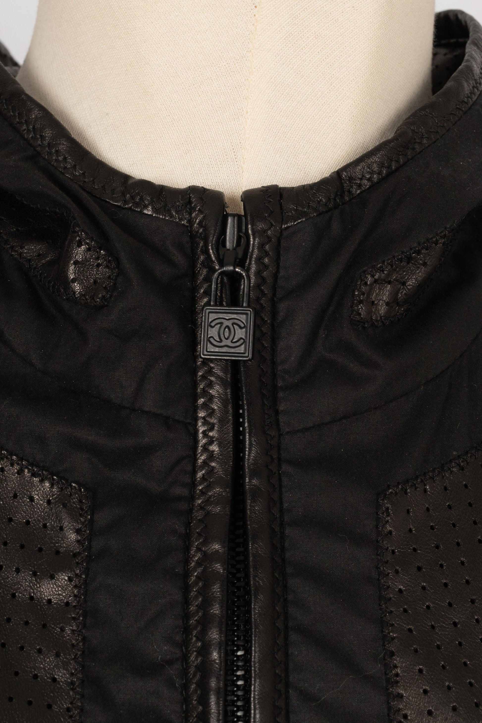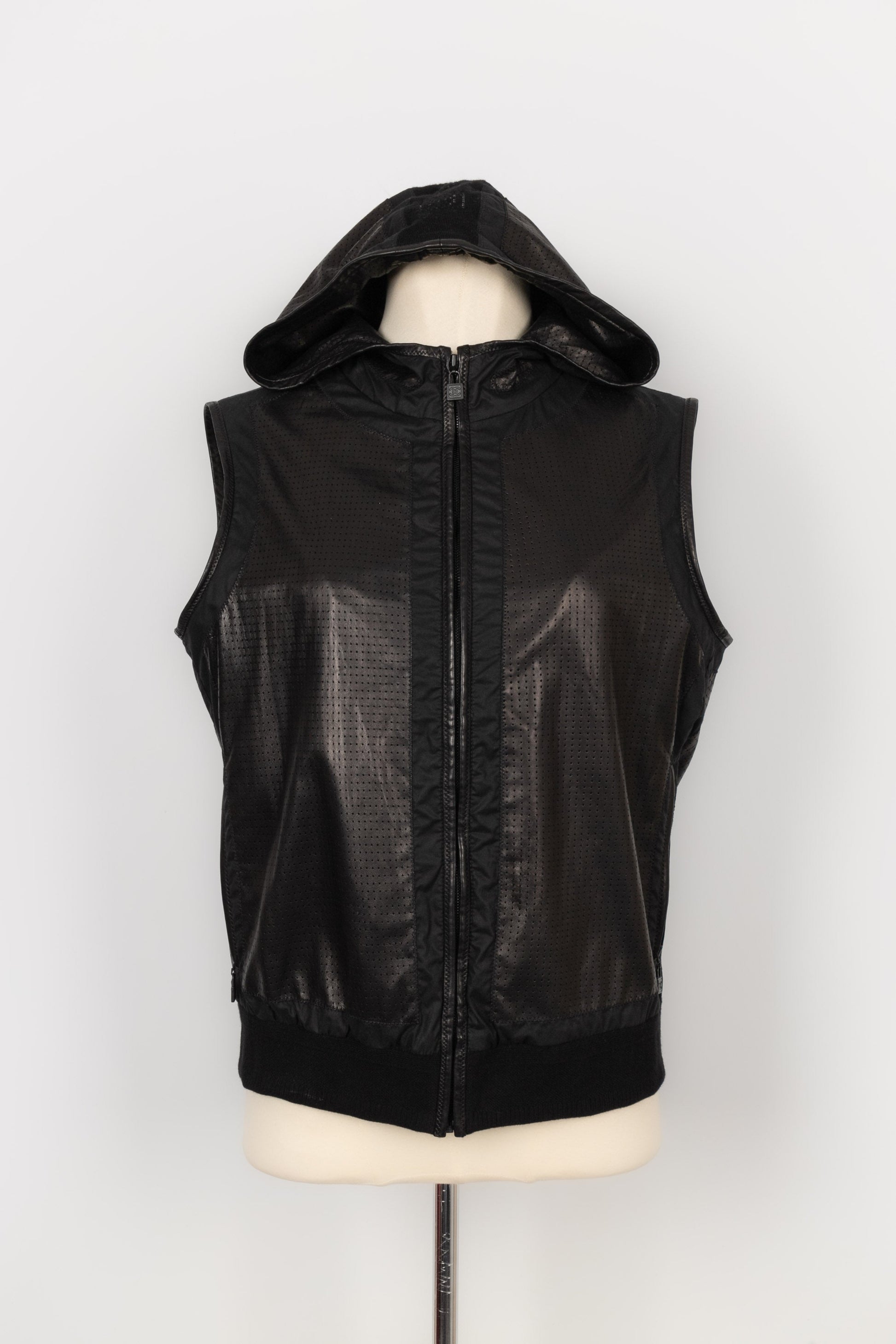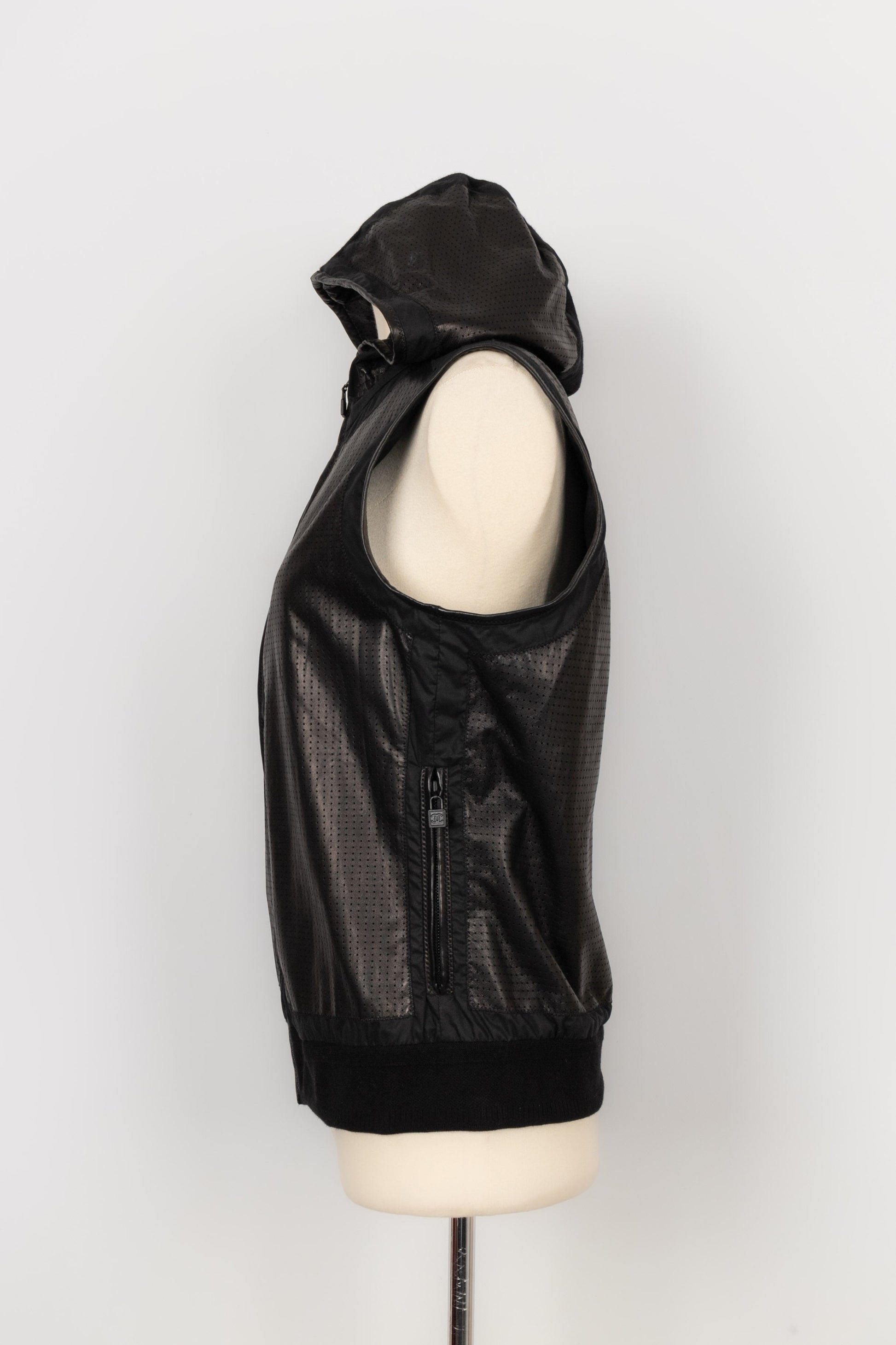 CHANEL -Veste sans manche � capuche. Pas de taille indiqu�e, elle correspond � un 36FR/38FR.