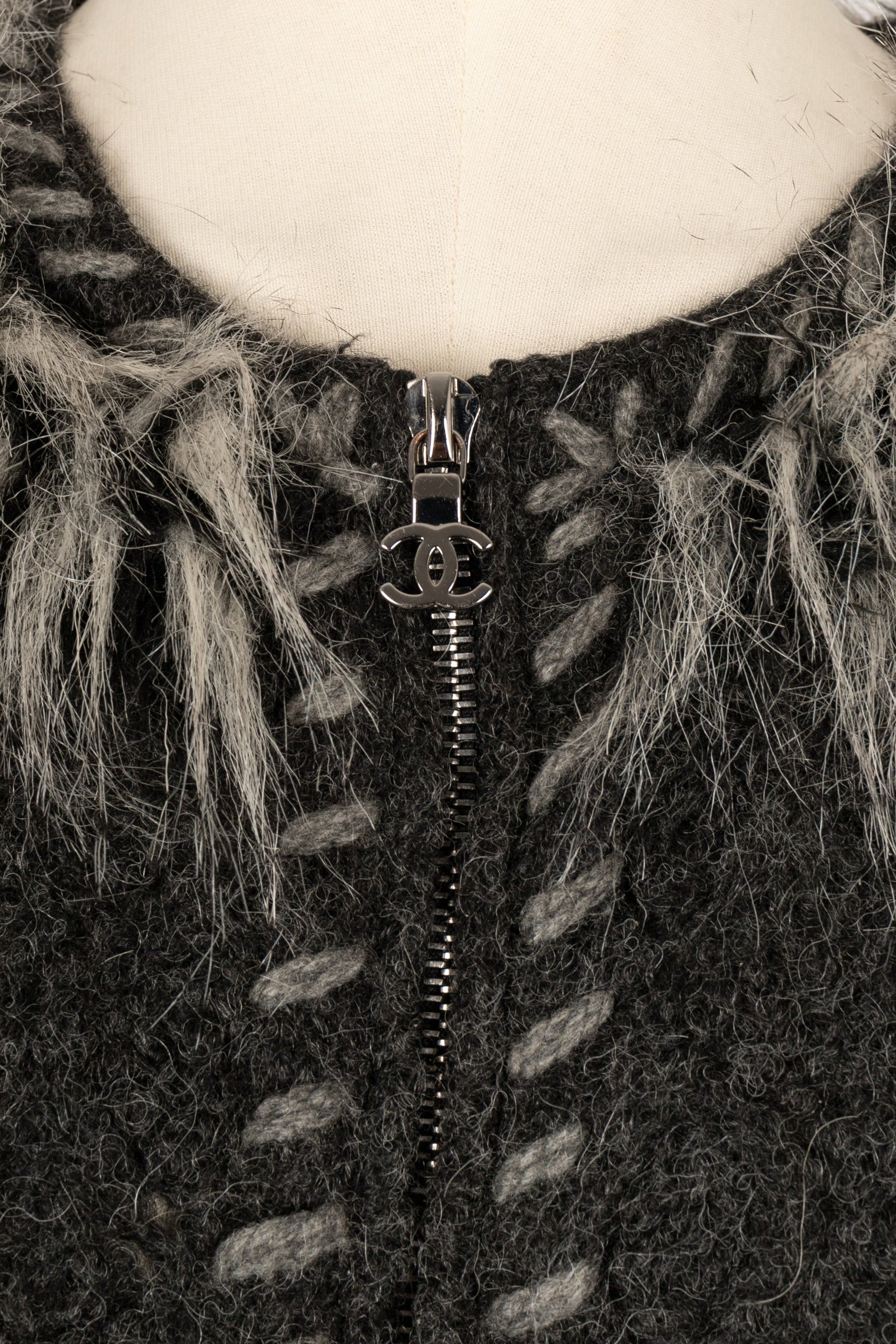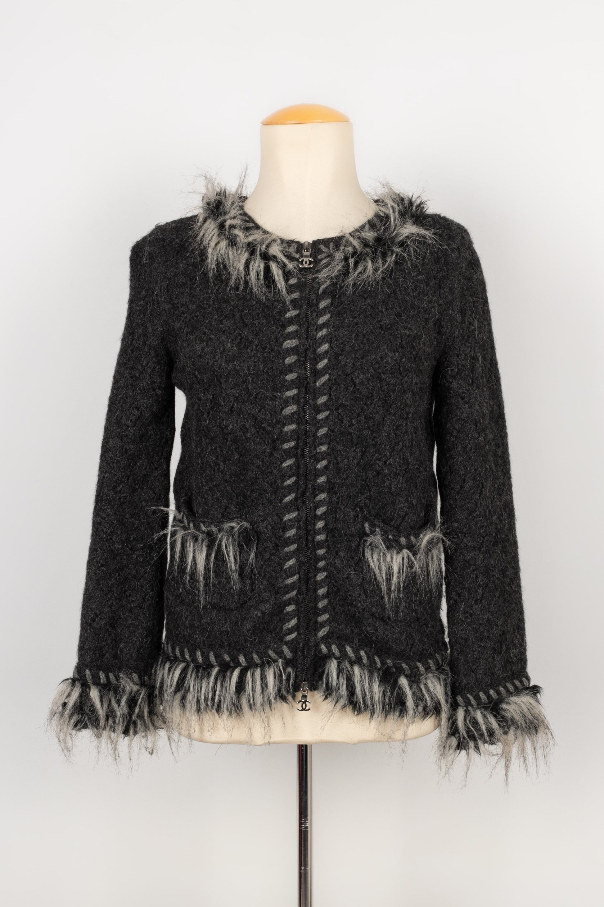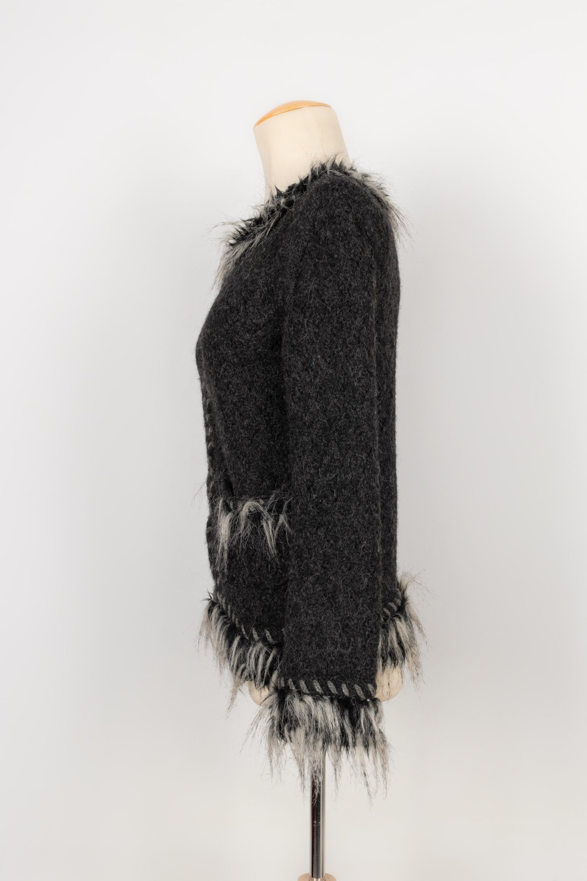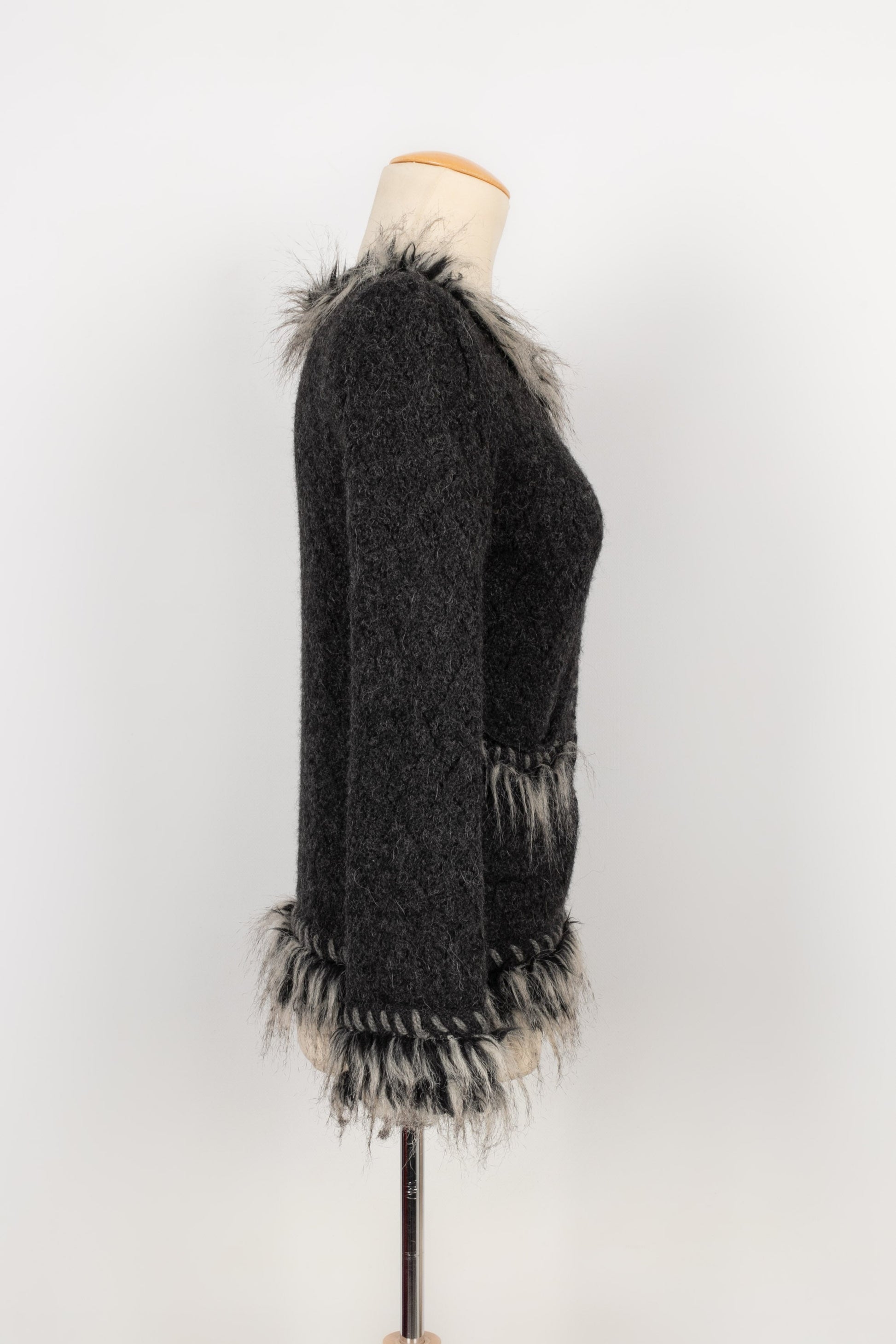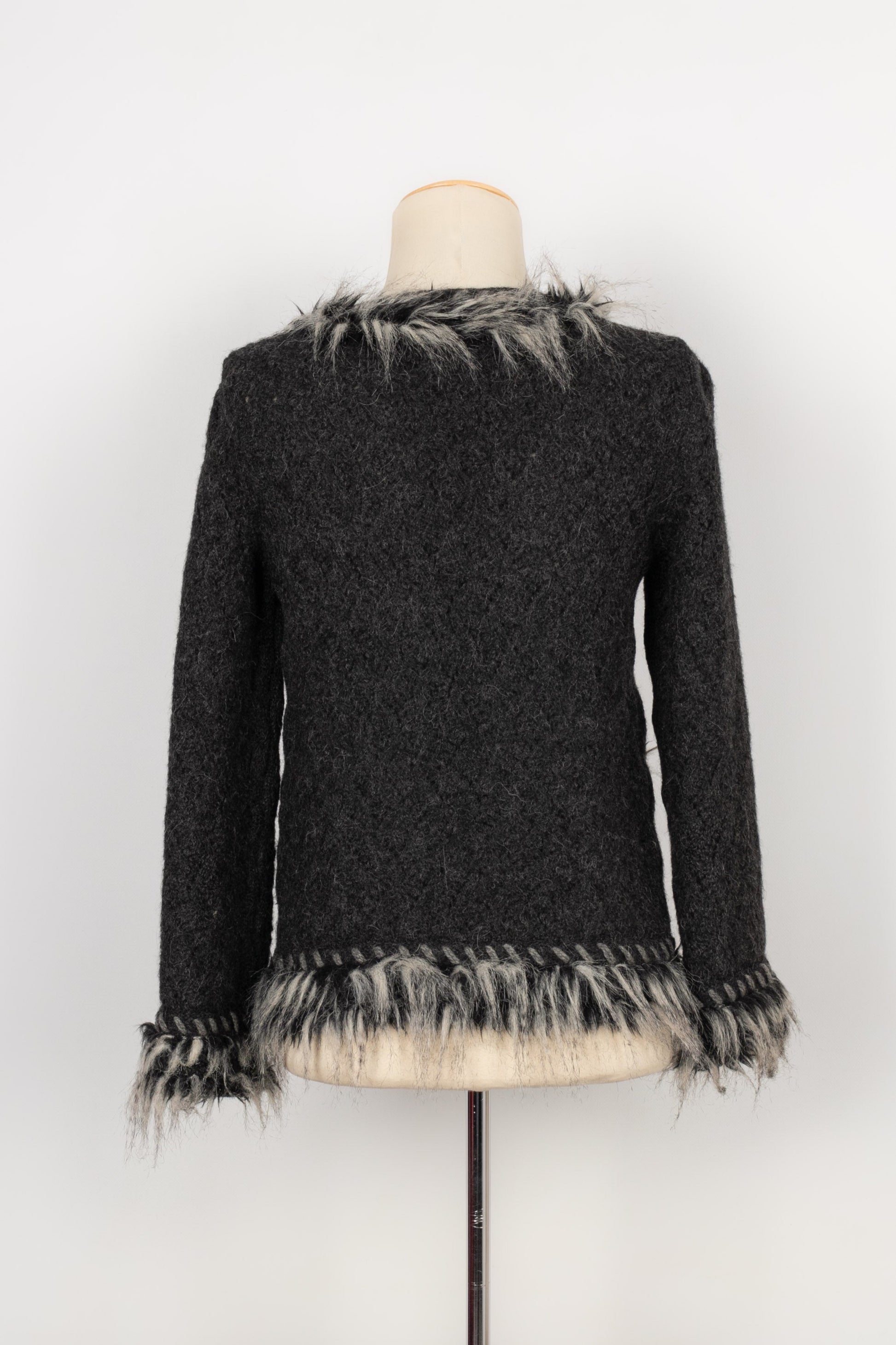 CHANEL - (Made in Italy) Veste en alpaga et cachemire bord� de fausse fourrure. Taille indiqu�e 36FR.