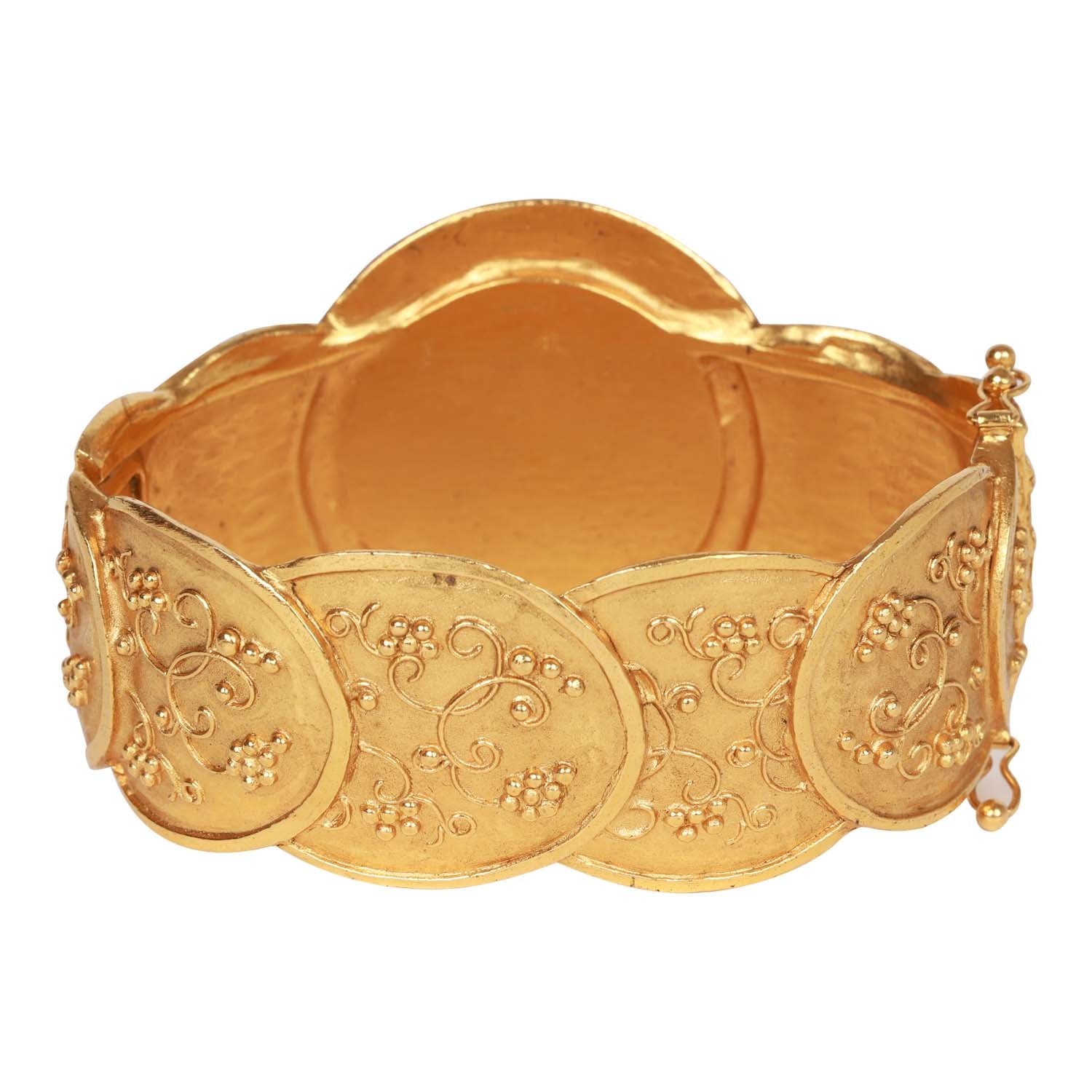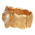 Vintage Chanel Gold Faux Pearl Textured Metal CC Logo Bracelet