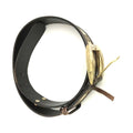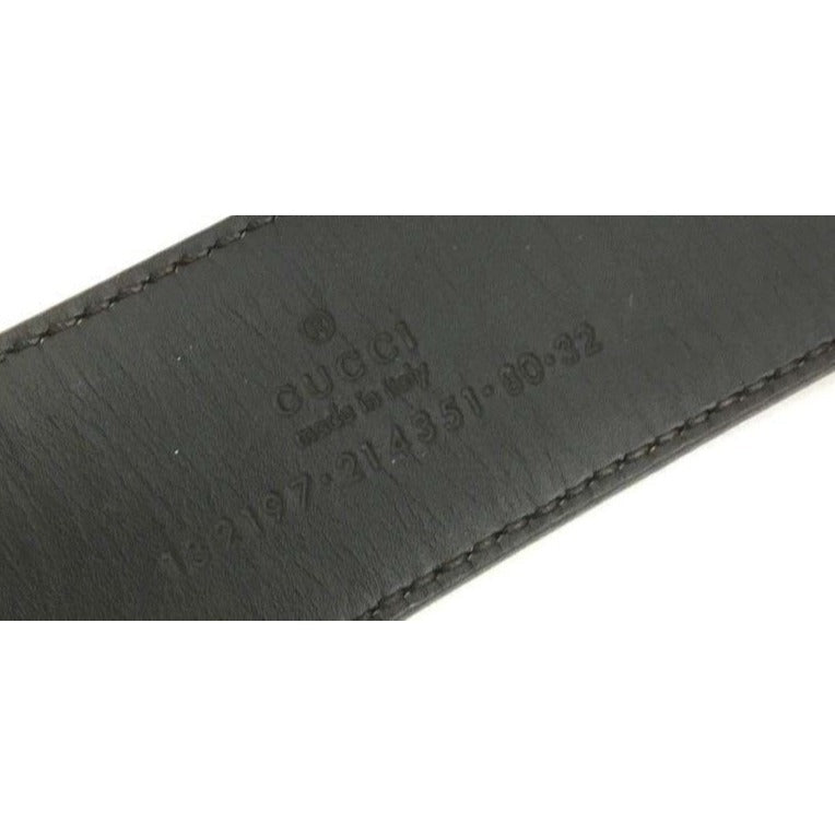 The vintage, brown Guccissima print canvas & brown leather belt has a chunky gold buckle engraved 'Gucci' on the front. On the back,it is stamped, ' Gucci, made in italy, with the serial #182197 214351 & size 80/32. It could easily work for a man or woman.