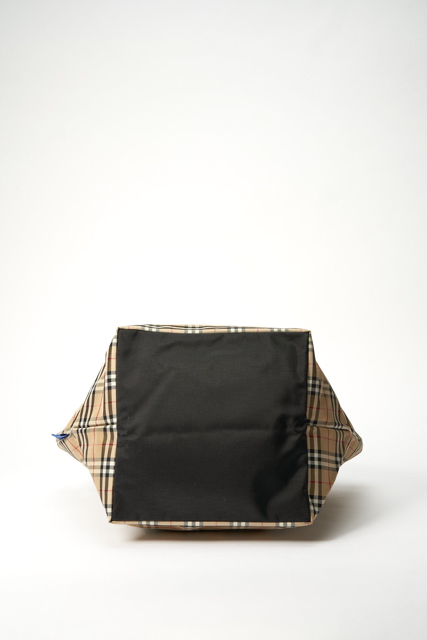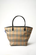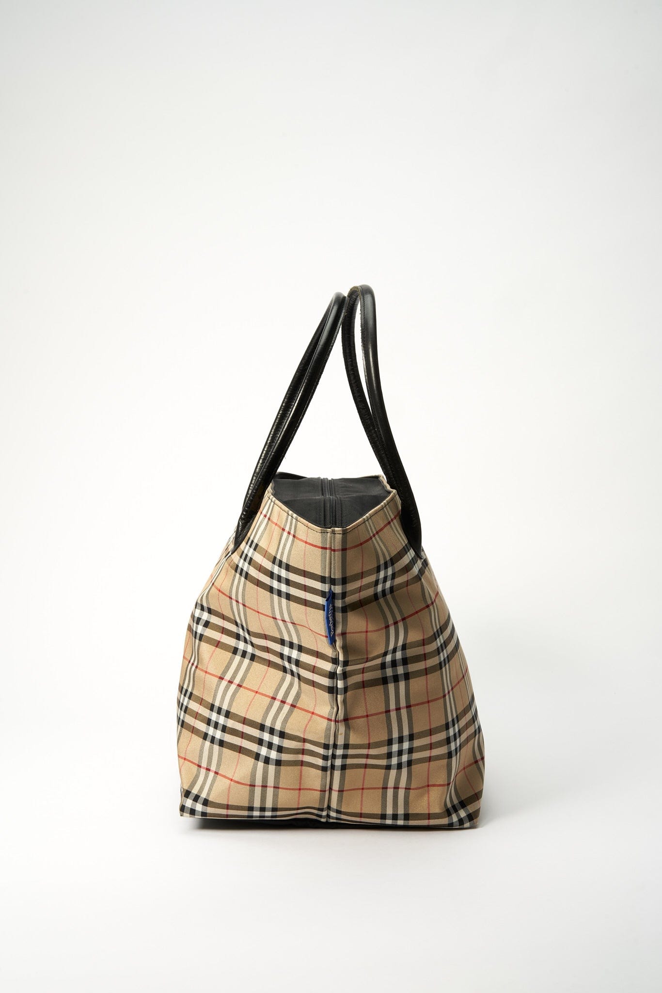 Vintage Burberry Blue Label Tote Bag with Black Leather Trim