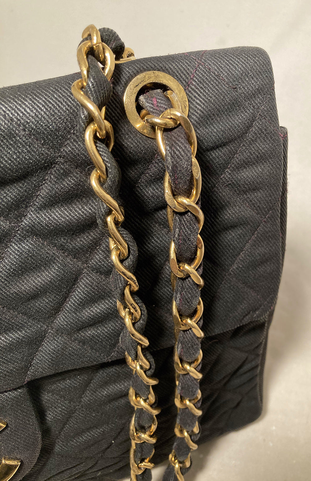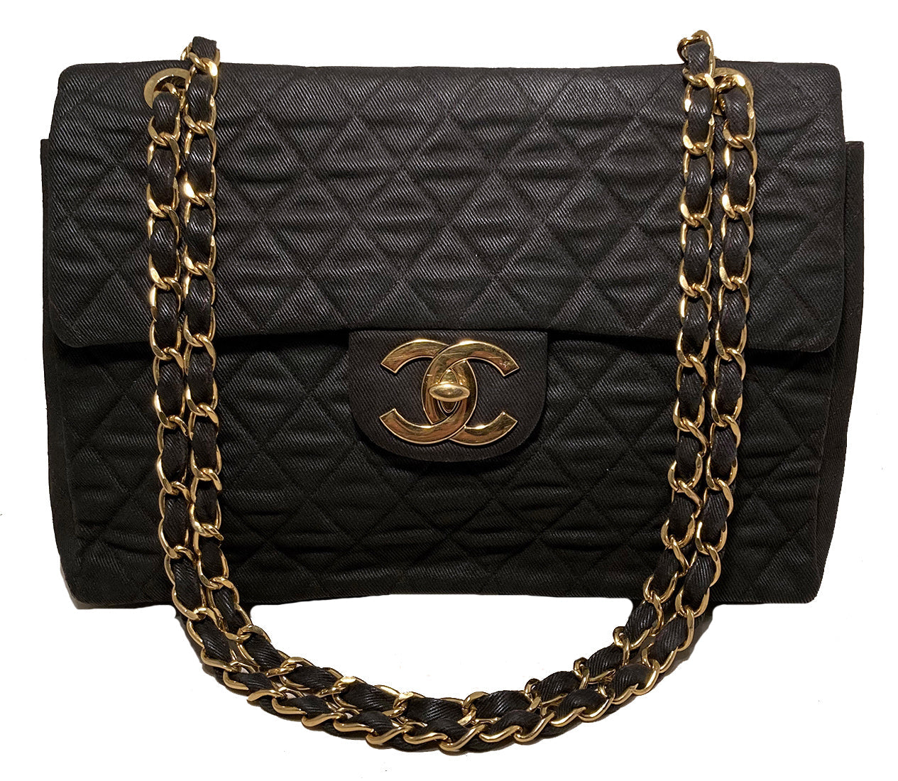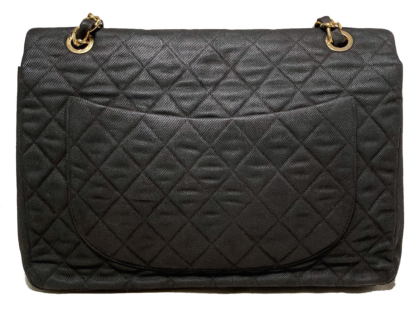 Vintage Chanel Black Denim Maxi Classic Flap Shoulder Bag