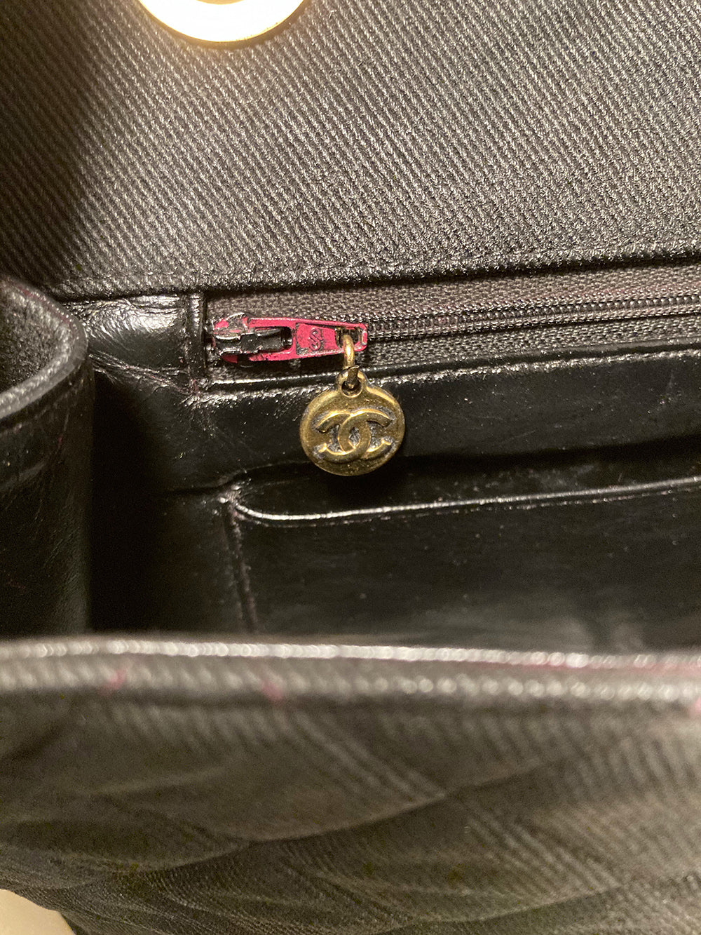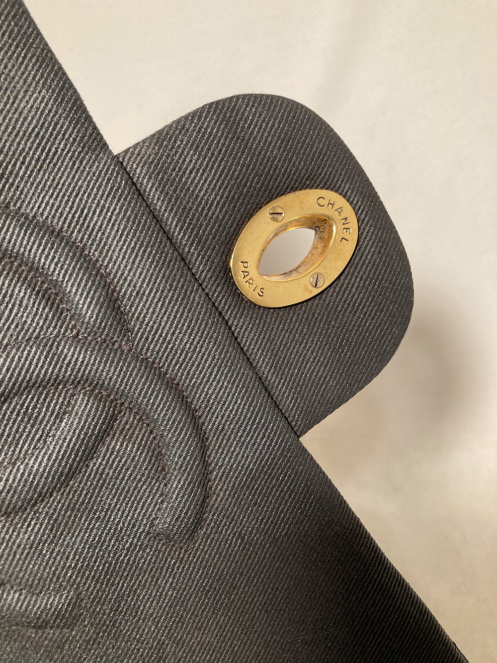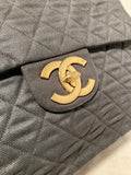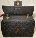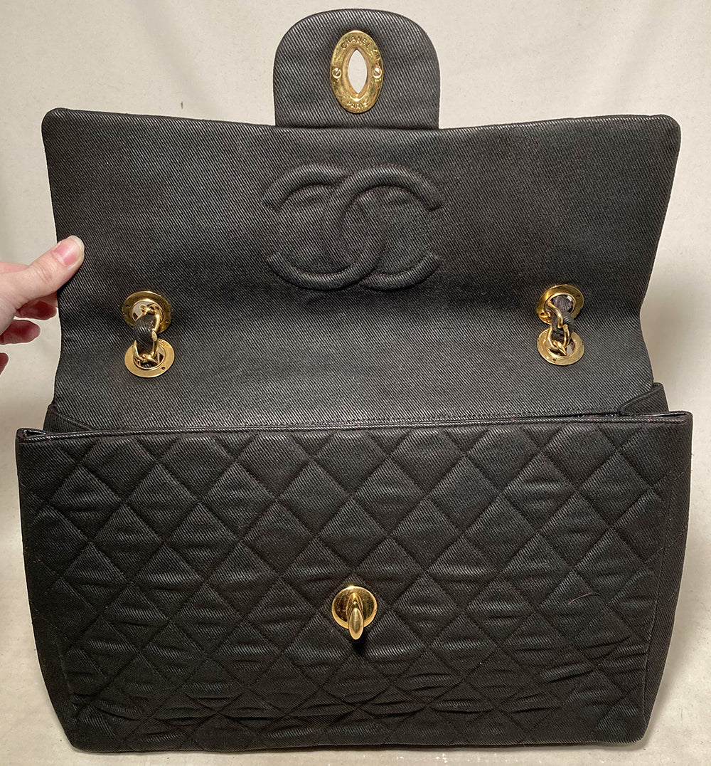 Vintage Chanel Black Denim Maxi Classic Flap Shoulder Bag