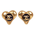 Vintage Chanel Blue CC Logo Gripoix Heart Earrings