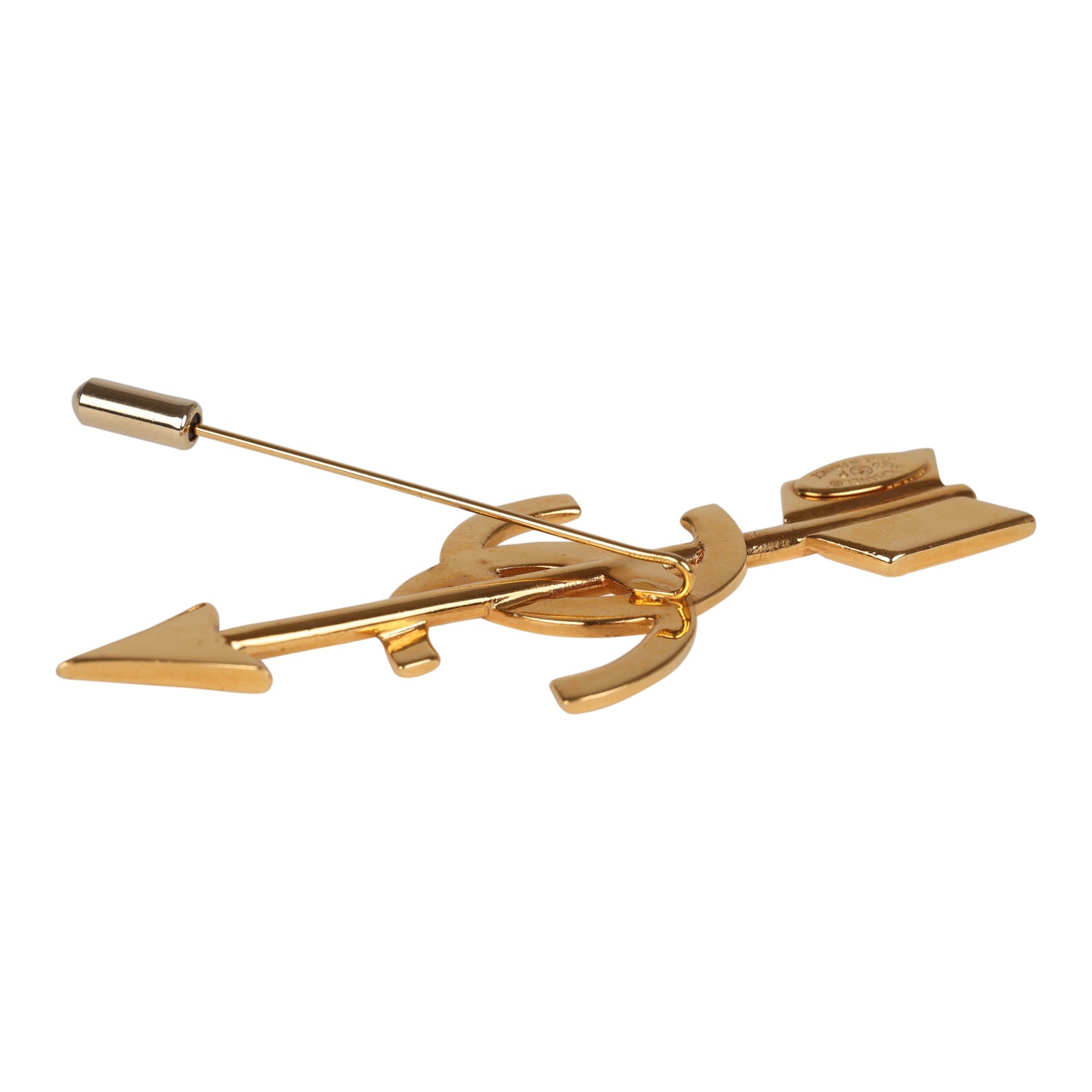 Vintage Chanel 24K Gold Plated CC Bow and Arrow Brooch