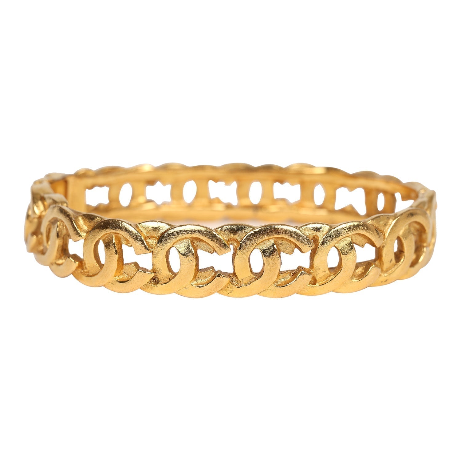 Vintage Chanel 24K Gold Plated CC Bangle Bracelet