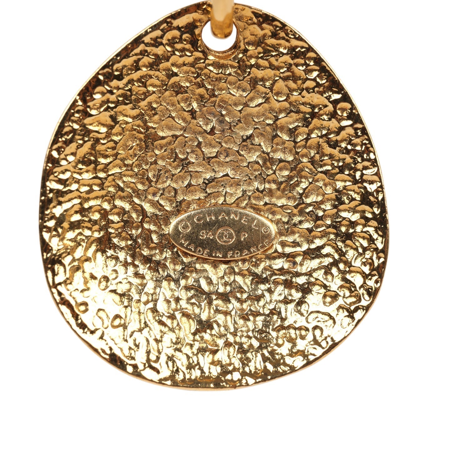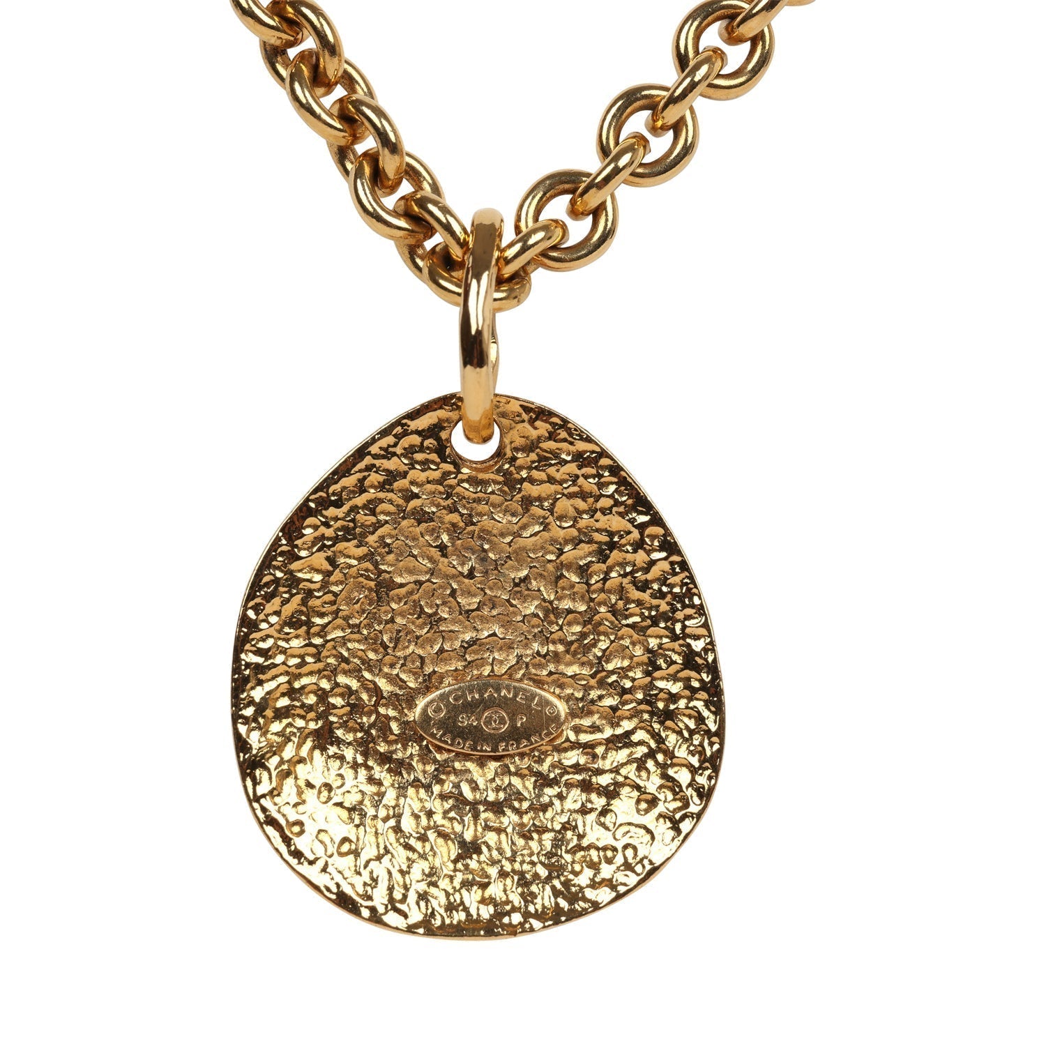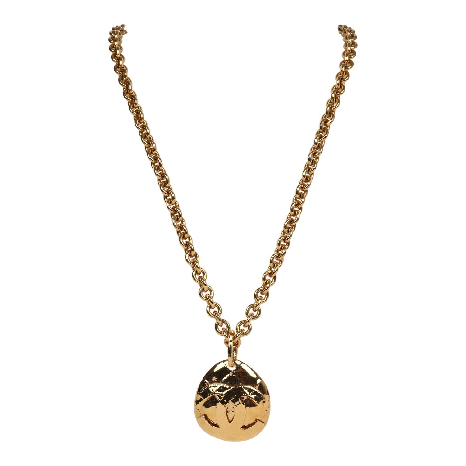 Vintage Chanel 24K Gold Plated CC Quilted Oval Pendant Necklace