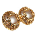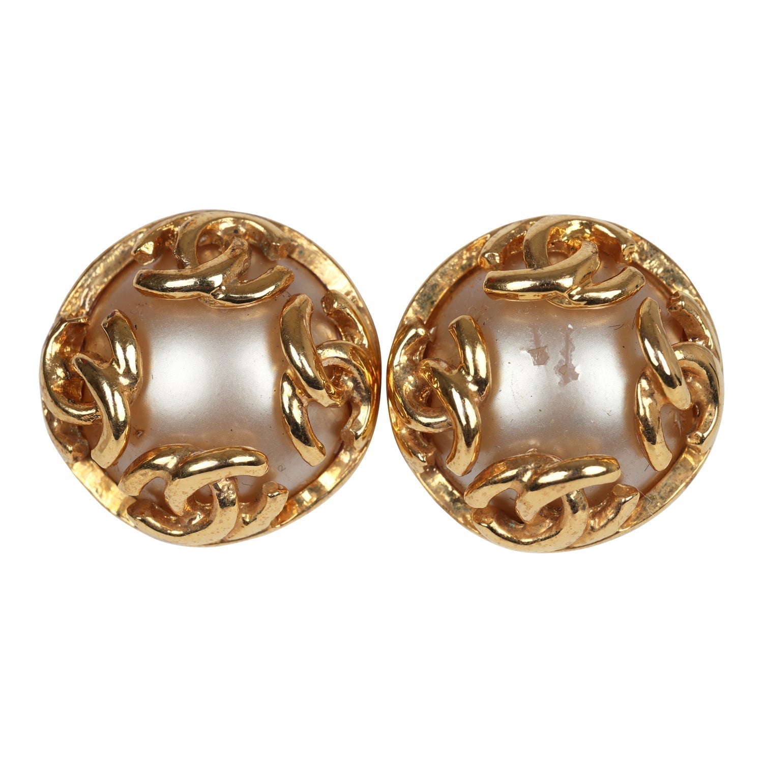 Vintage Chanel 24K Gold Plated CC Round Pearl Earrings Gold Hardware