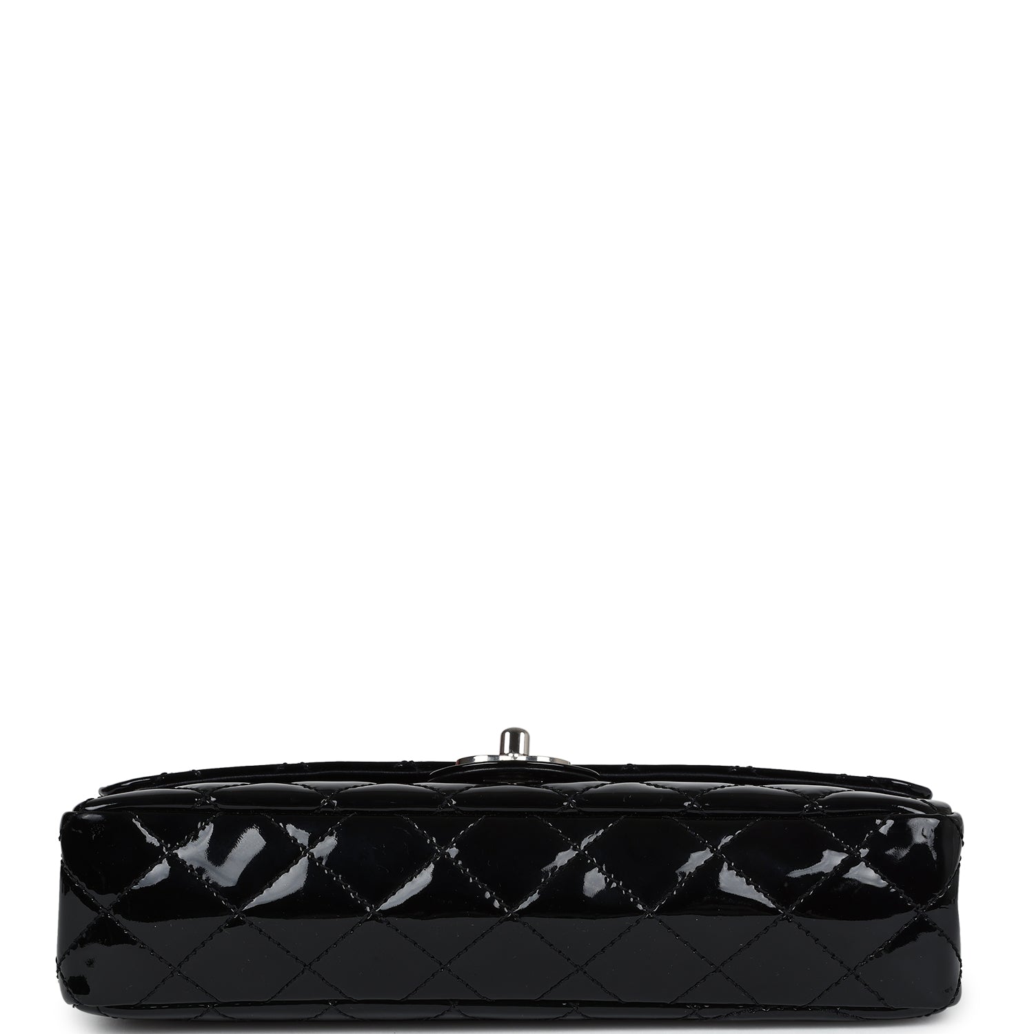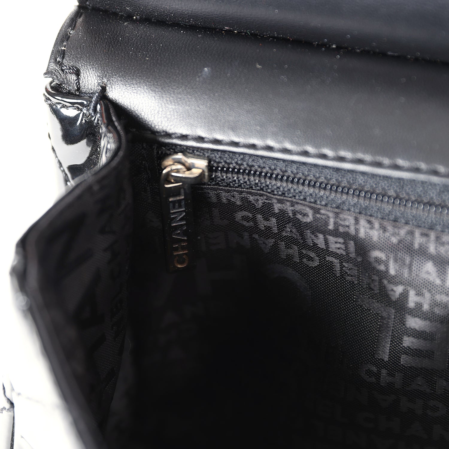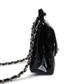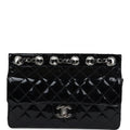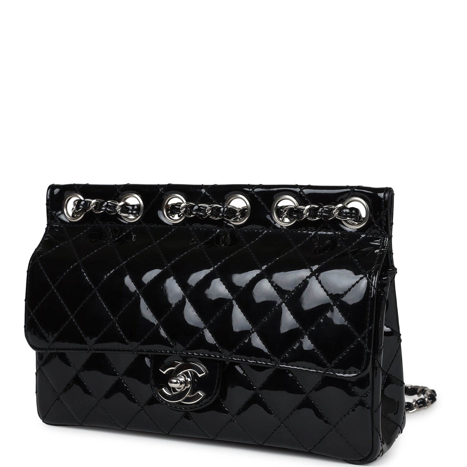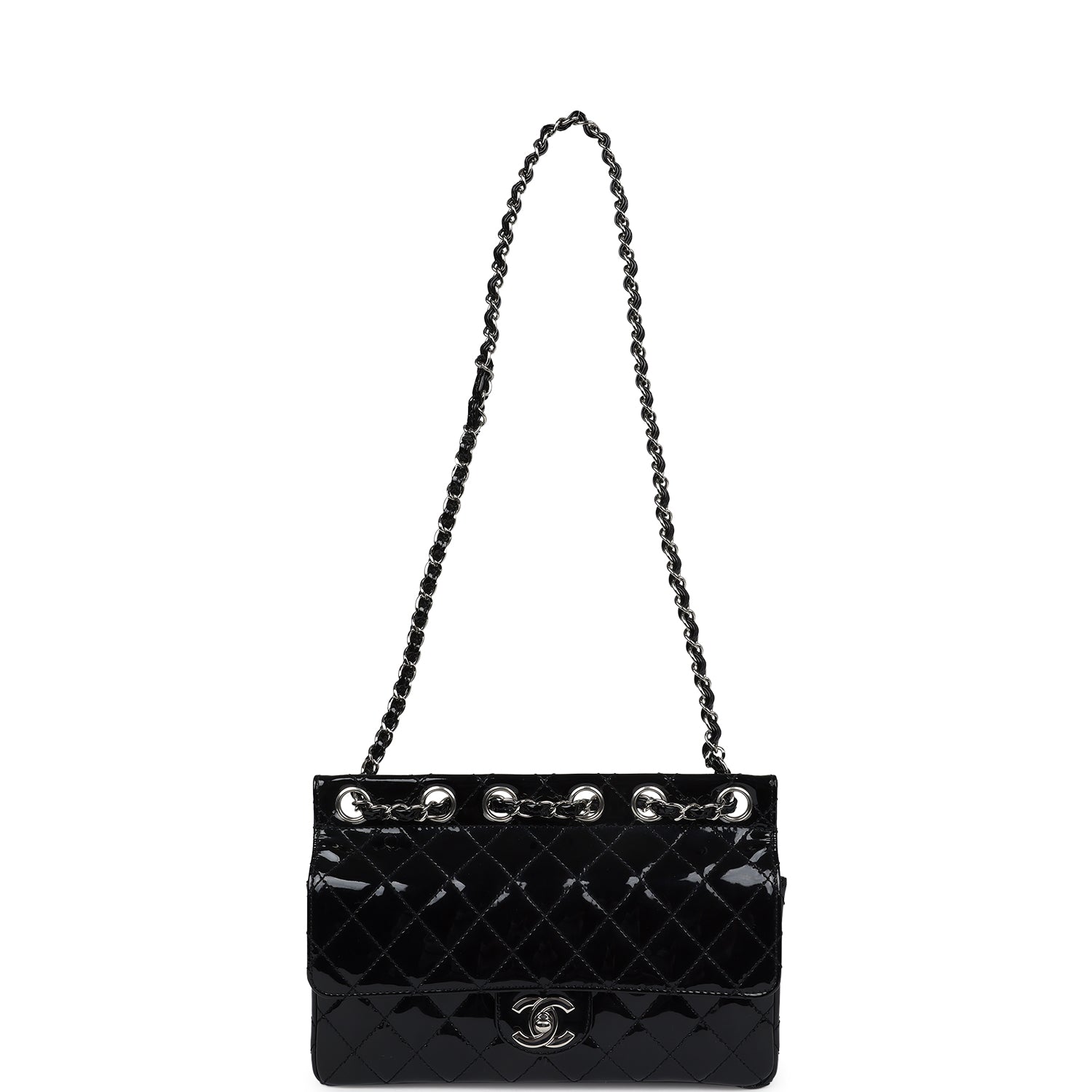 Vintage Chanel Chain Through Flap Bag Black Patent Silver Hardware