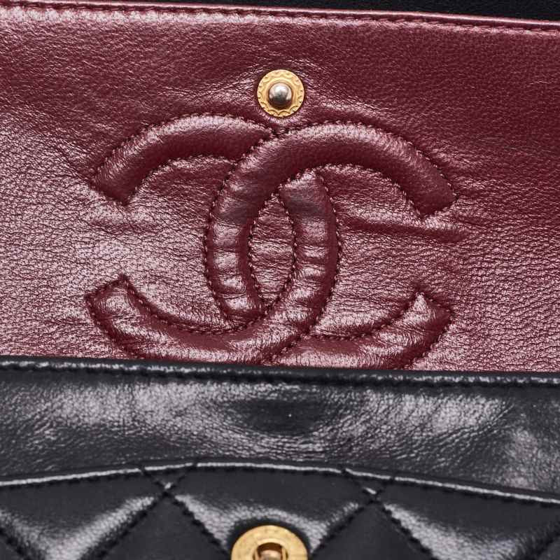 This iconic accessory showcases the very essence of Chanel with its meticulously quilted leather, which feels as good as it looks. Its shiny black exterior, juxtaposed with gold-tone hardware, presents an aura of sophistication and elegance that transcends trends. The signature interlocking CC turn-lock closure opens to a burgundy leather-lined interior with multiple compartments, offering practicality alongside style.