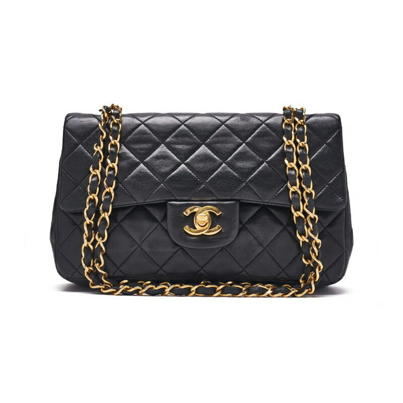 Vintage Chanel Classic Double Flap Shoulder Bag Small Black
