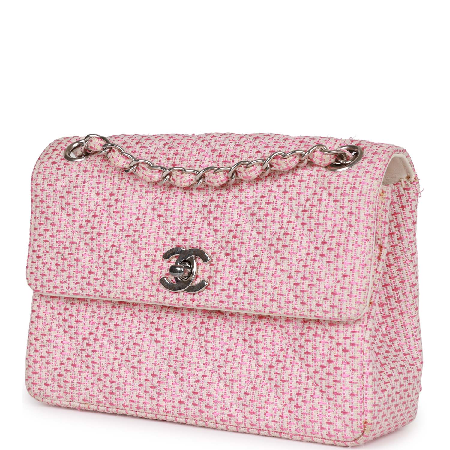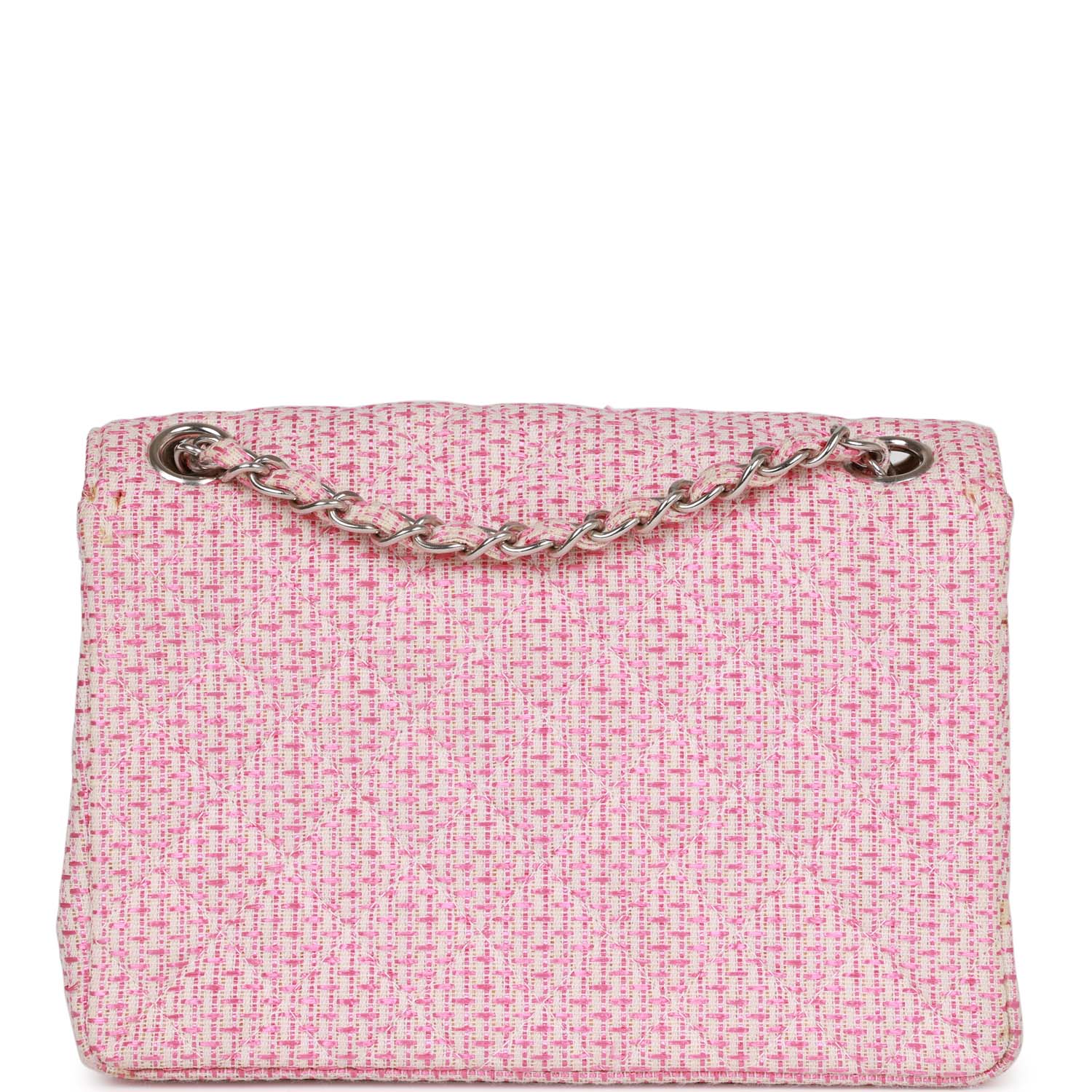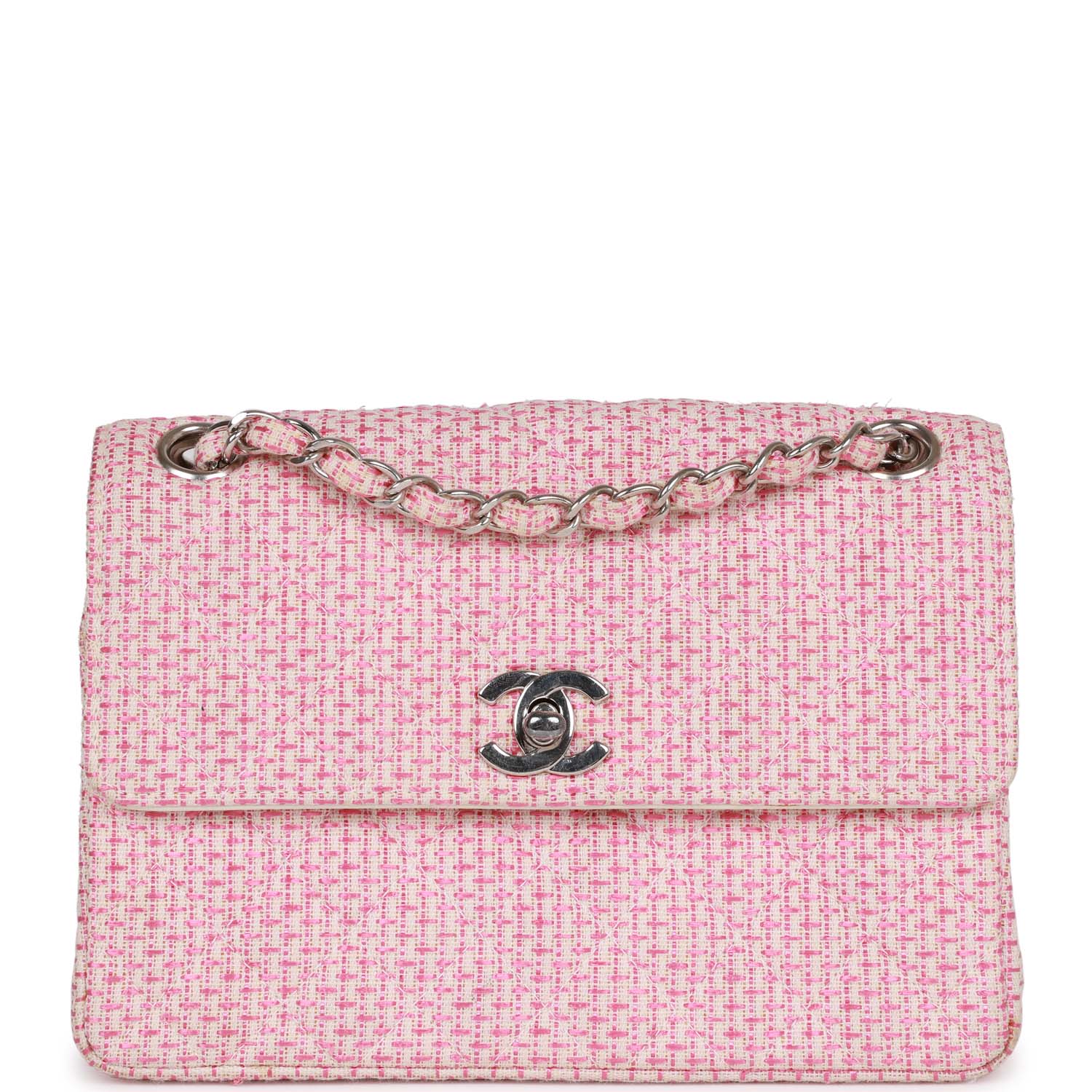 Vintage Chanel Classic Mini Flap Bag Pink Tweed Silver Hardware