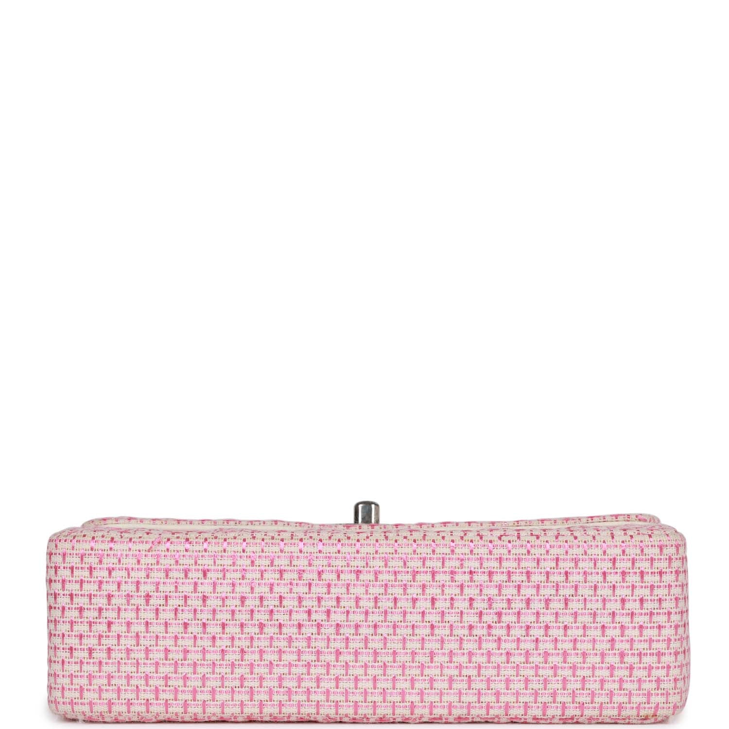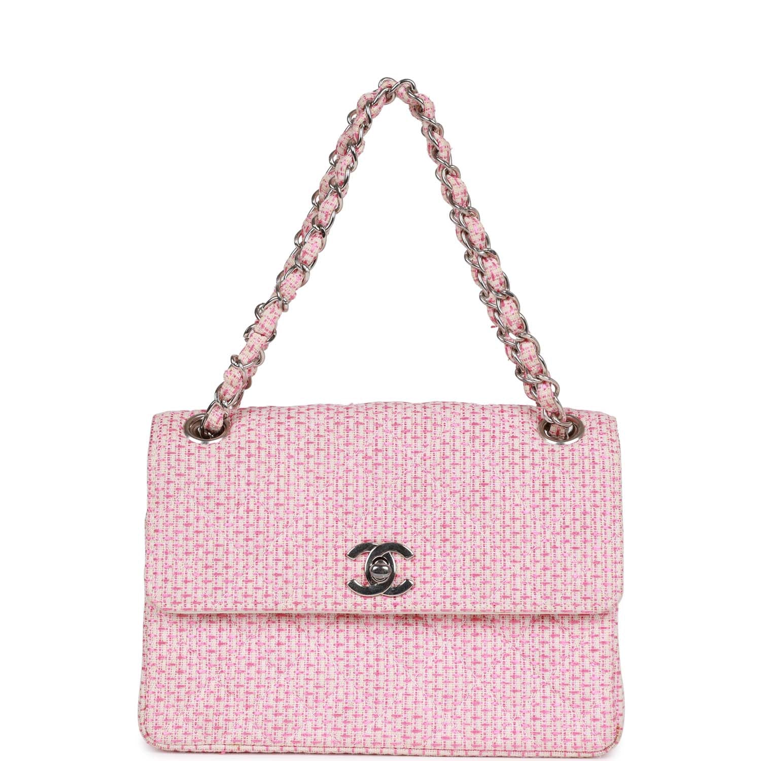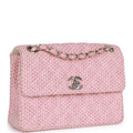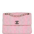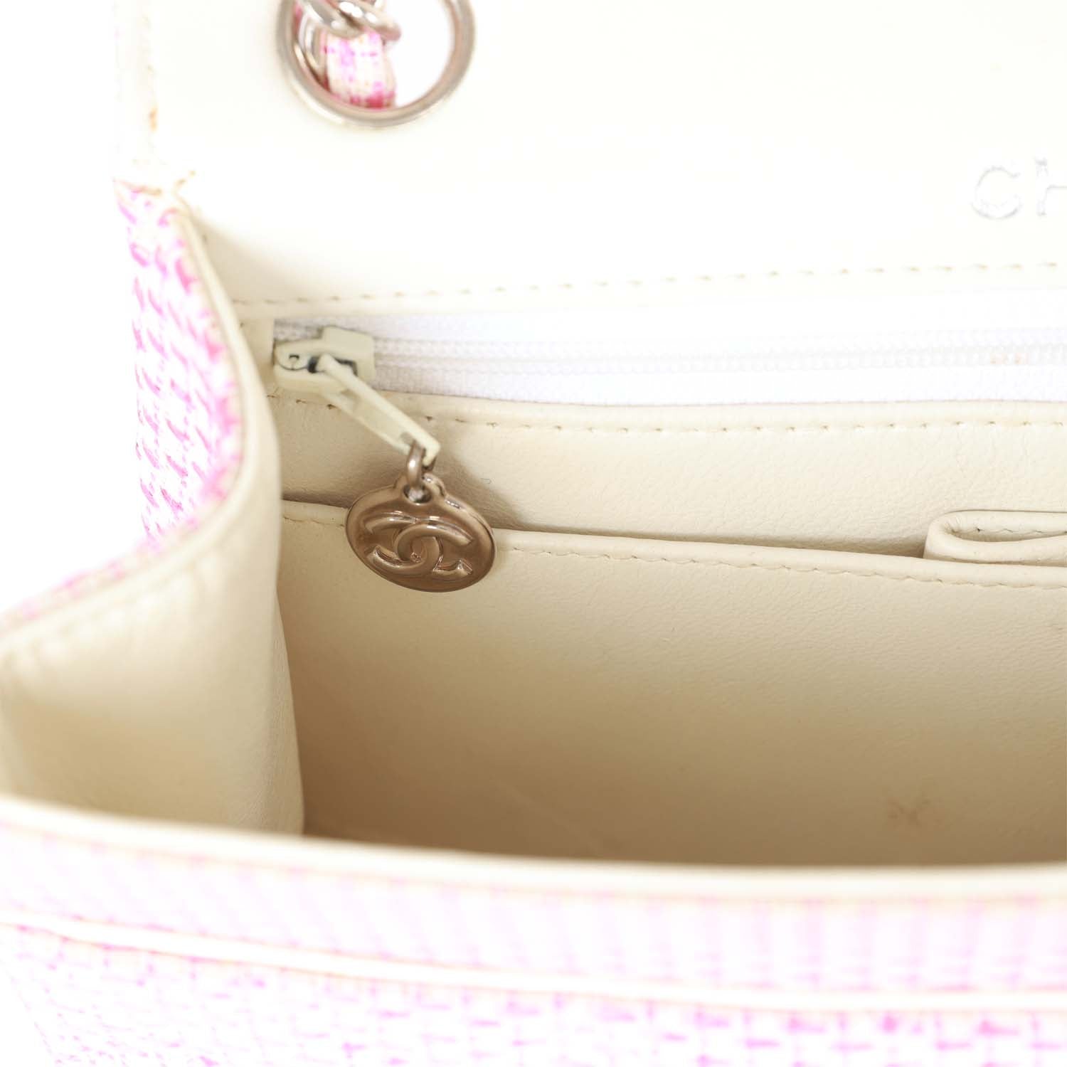 Vintage Chanel Classic Mini Flap Bag Pink Tweed Silver Hardware