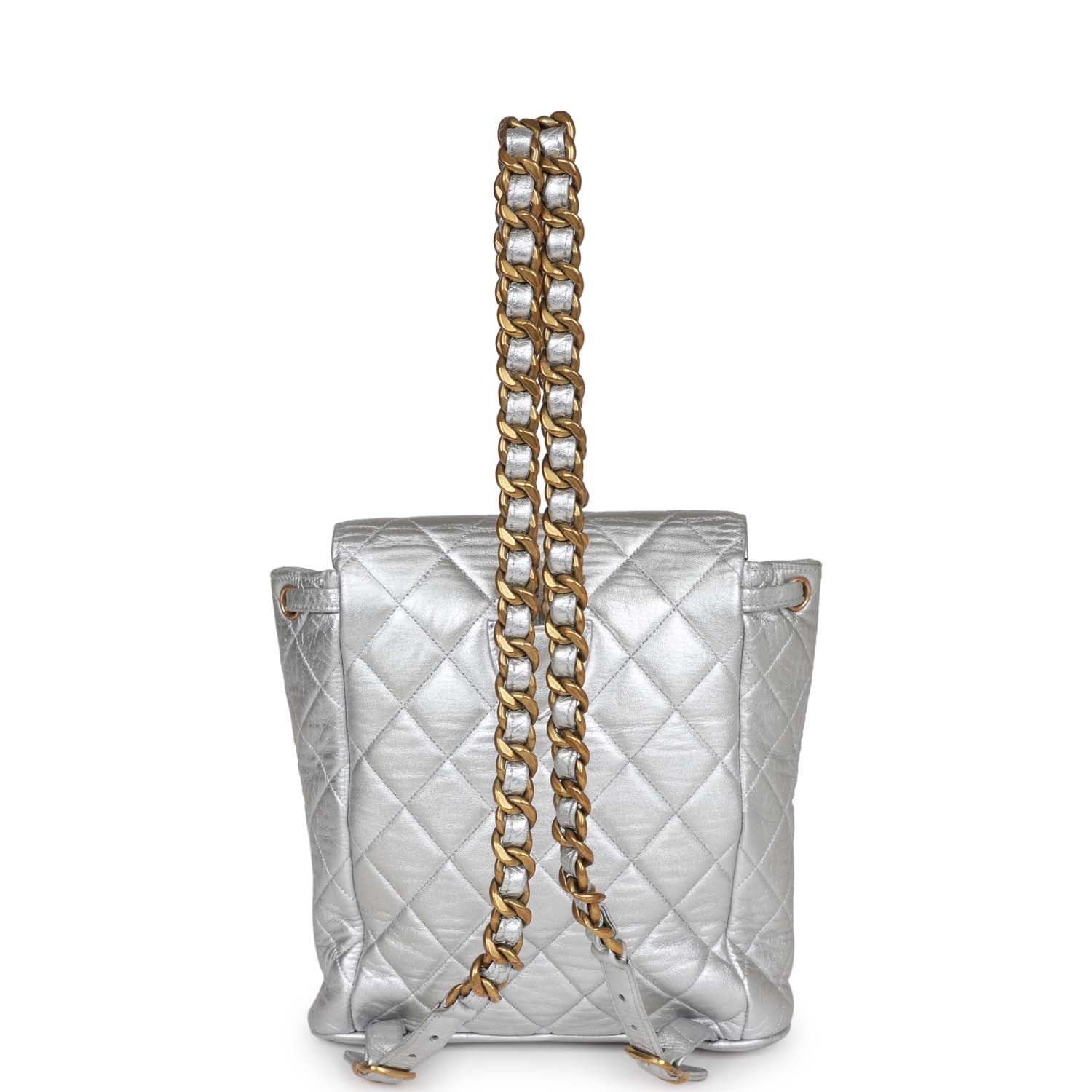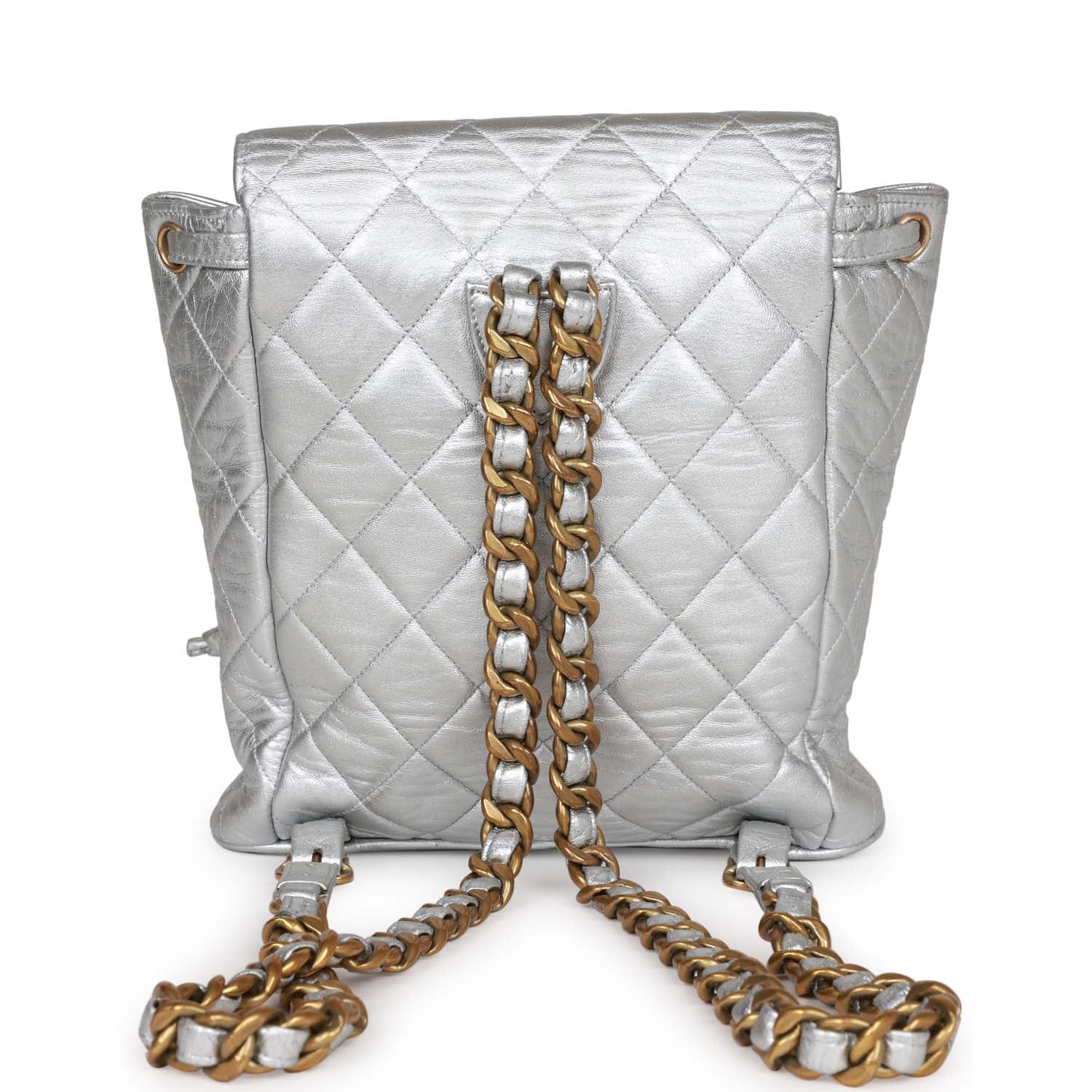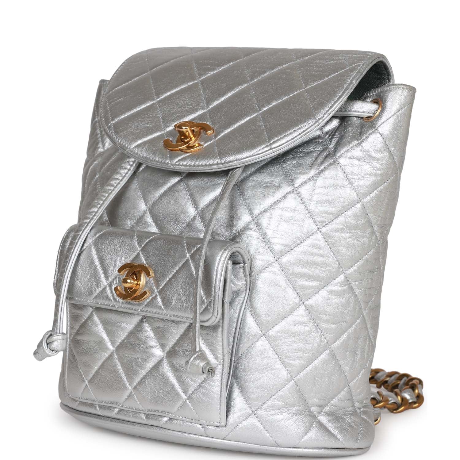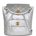 Vintage Chanel Duma Backpack Silver Metallic Lambskin Gold Hardware