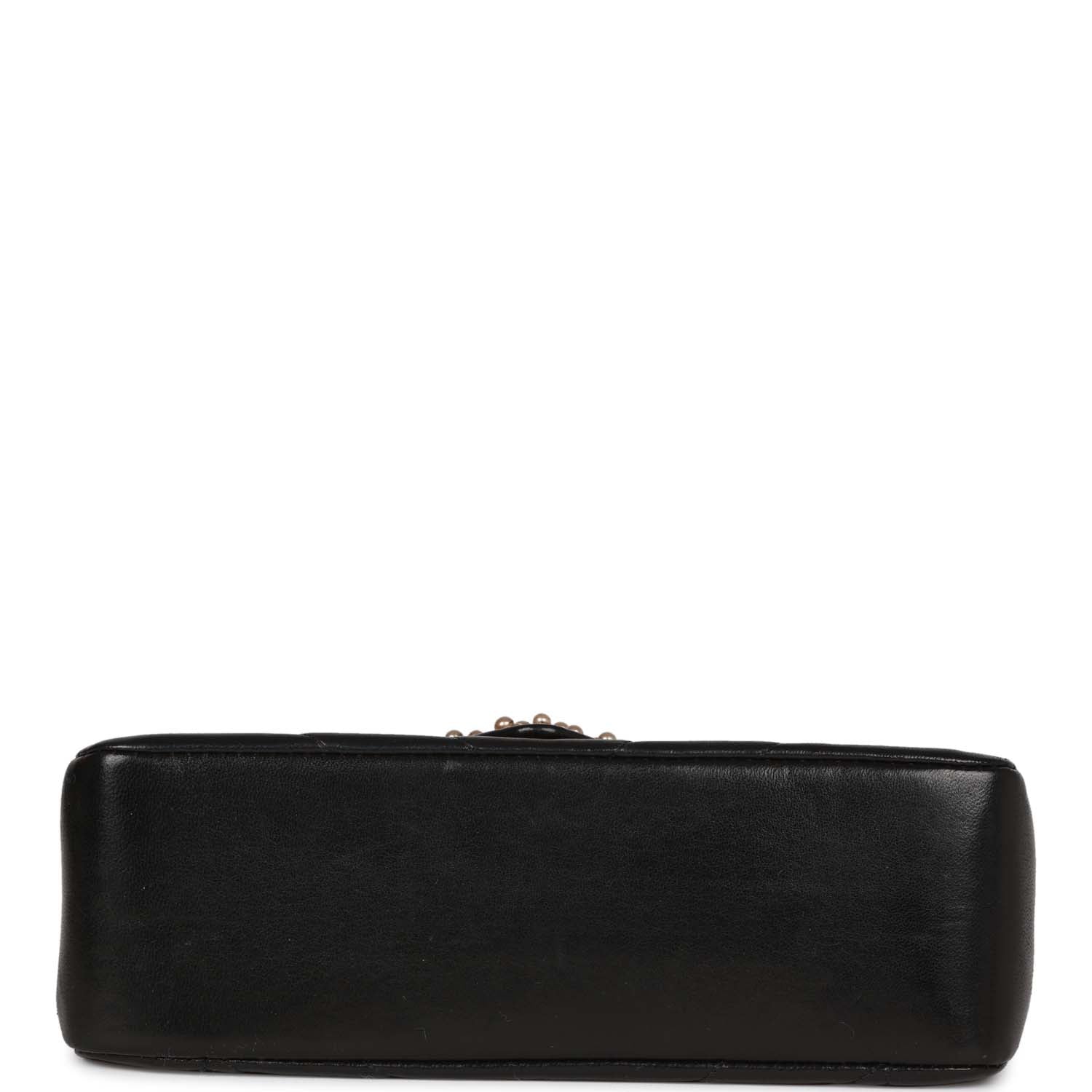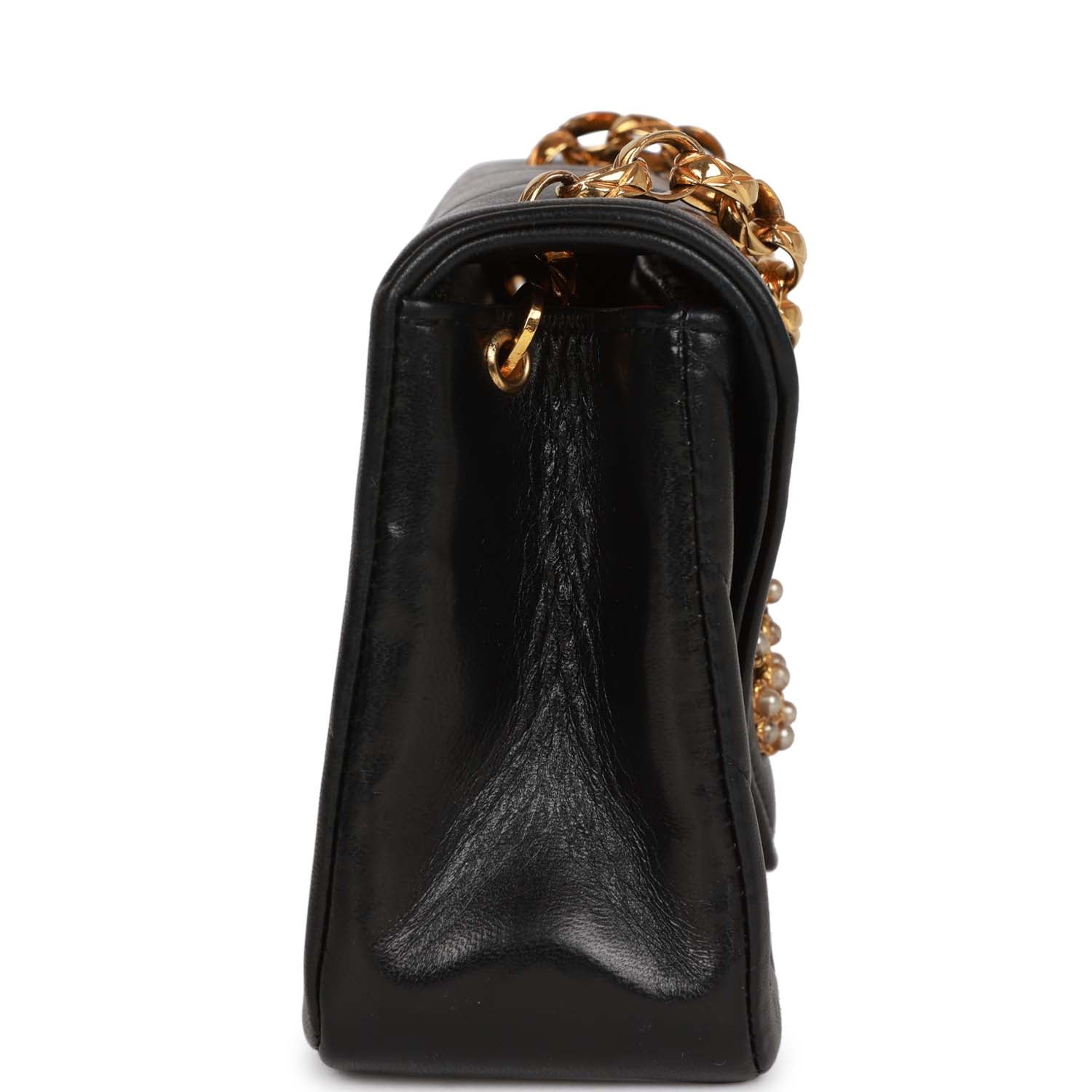 Vintage Chanel Faux Pearl Coco Bijou Mini Flap Bag Black Lambskin Gold Hardware