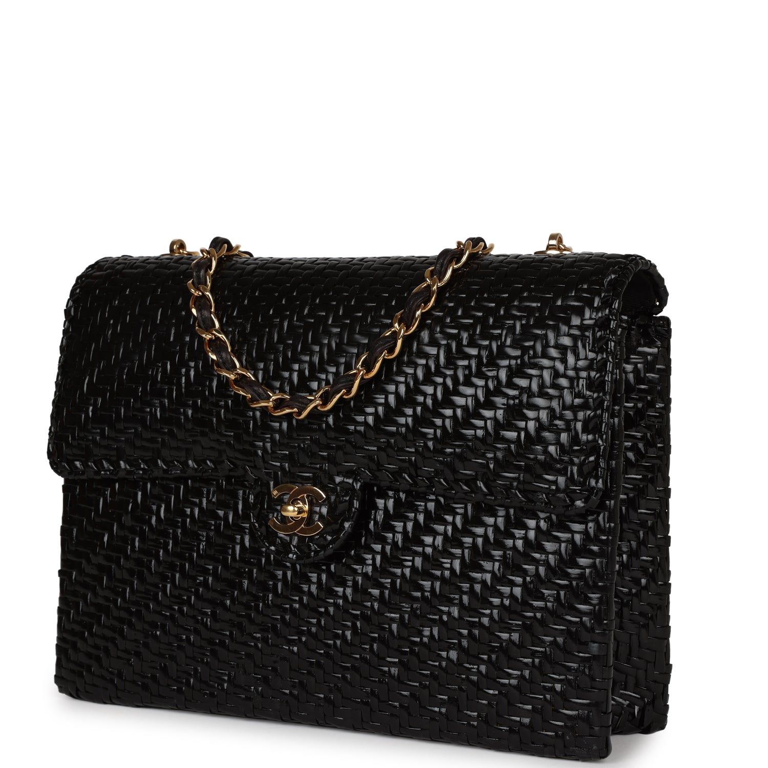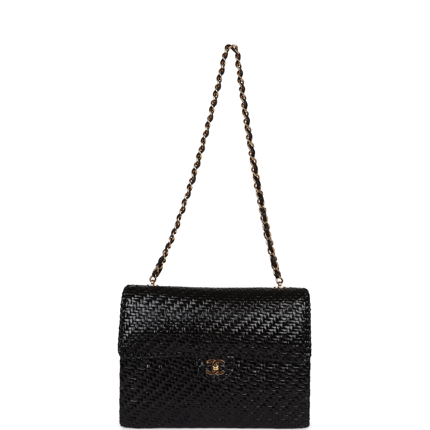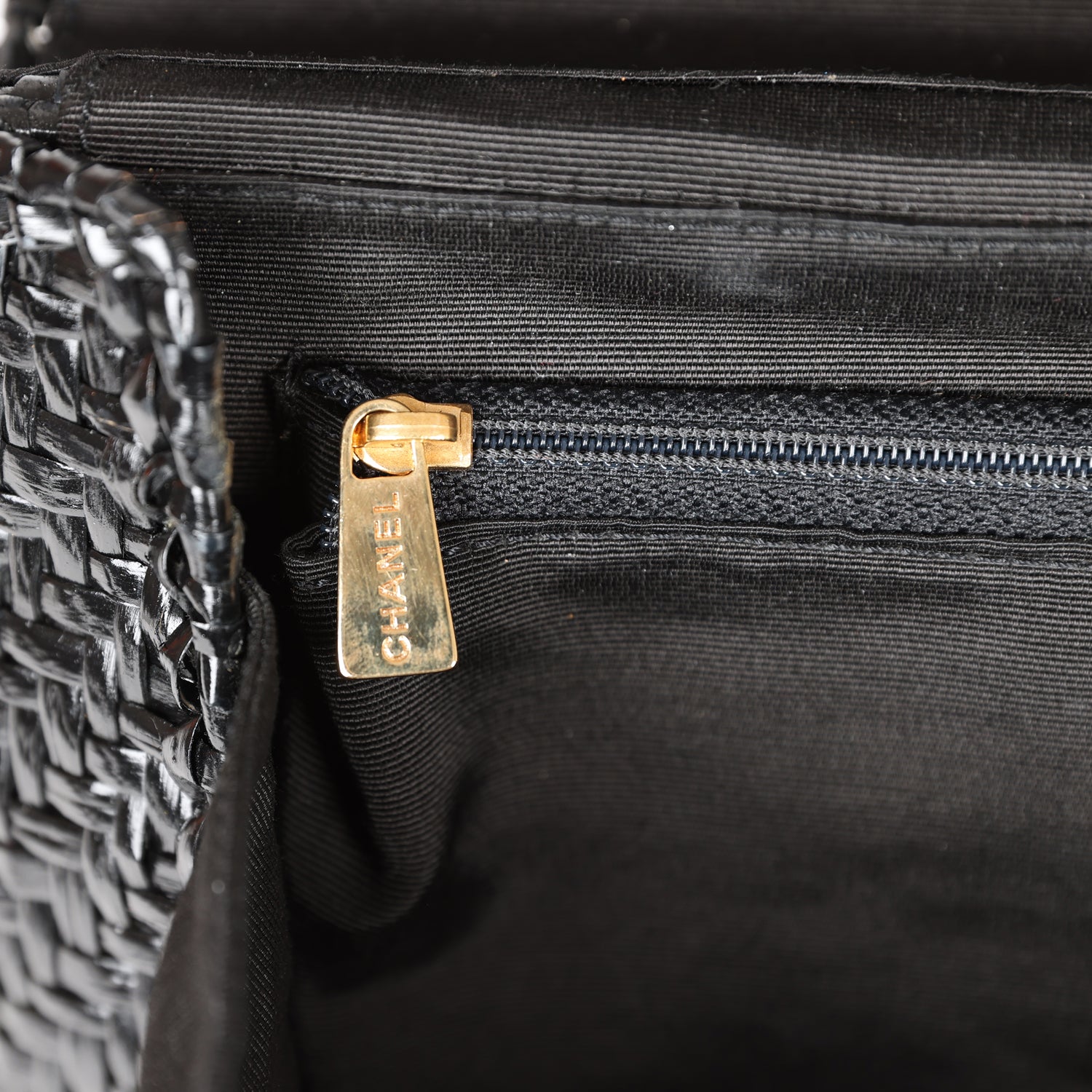 Vintage Chanel Flap Bag Black Wicker Gold Hardware