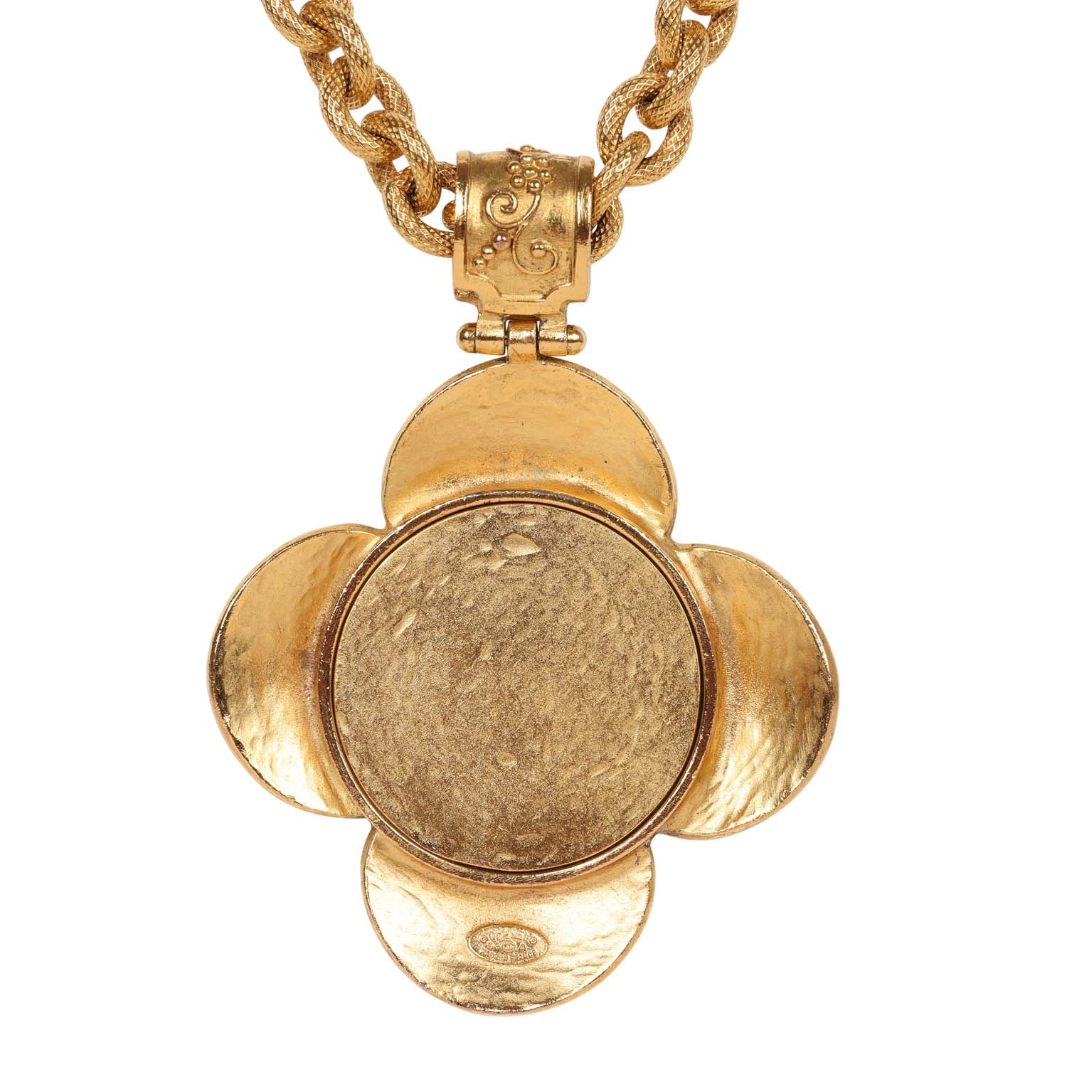 Vintage Chanel 24K Gold Plated Grapevine Mirror Pendant Necklace