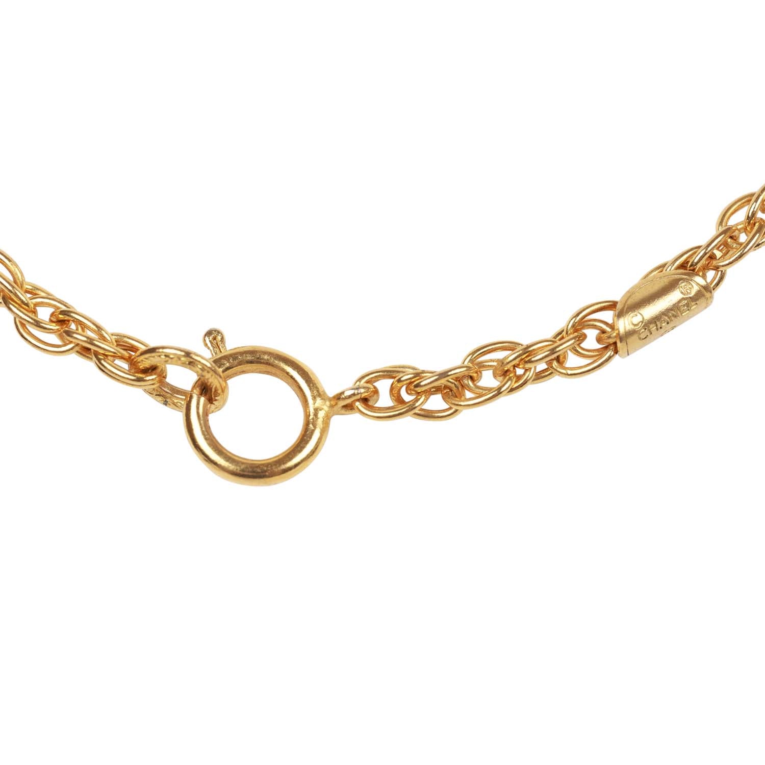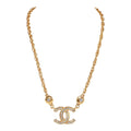 Vintage Chanel 24K Gold Plated Crystal Signature CC Logo Necklace