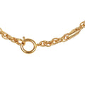 This vintage Chanel necklace in 24K gold plated metal has an interlocking CC logo hanging pendant with crystal detailing, a woven rope chain and a spring ring closure.