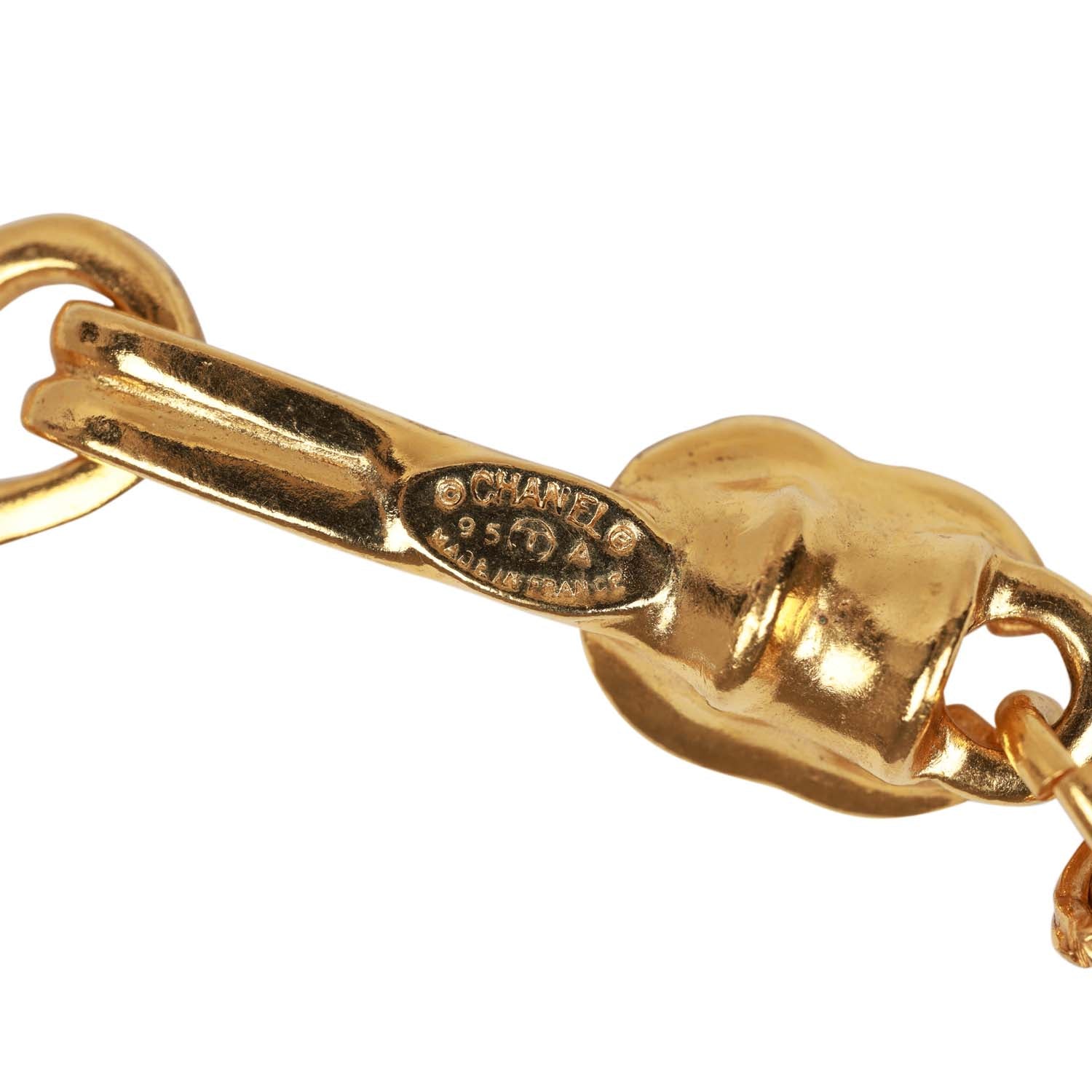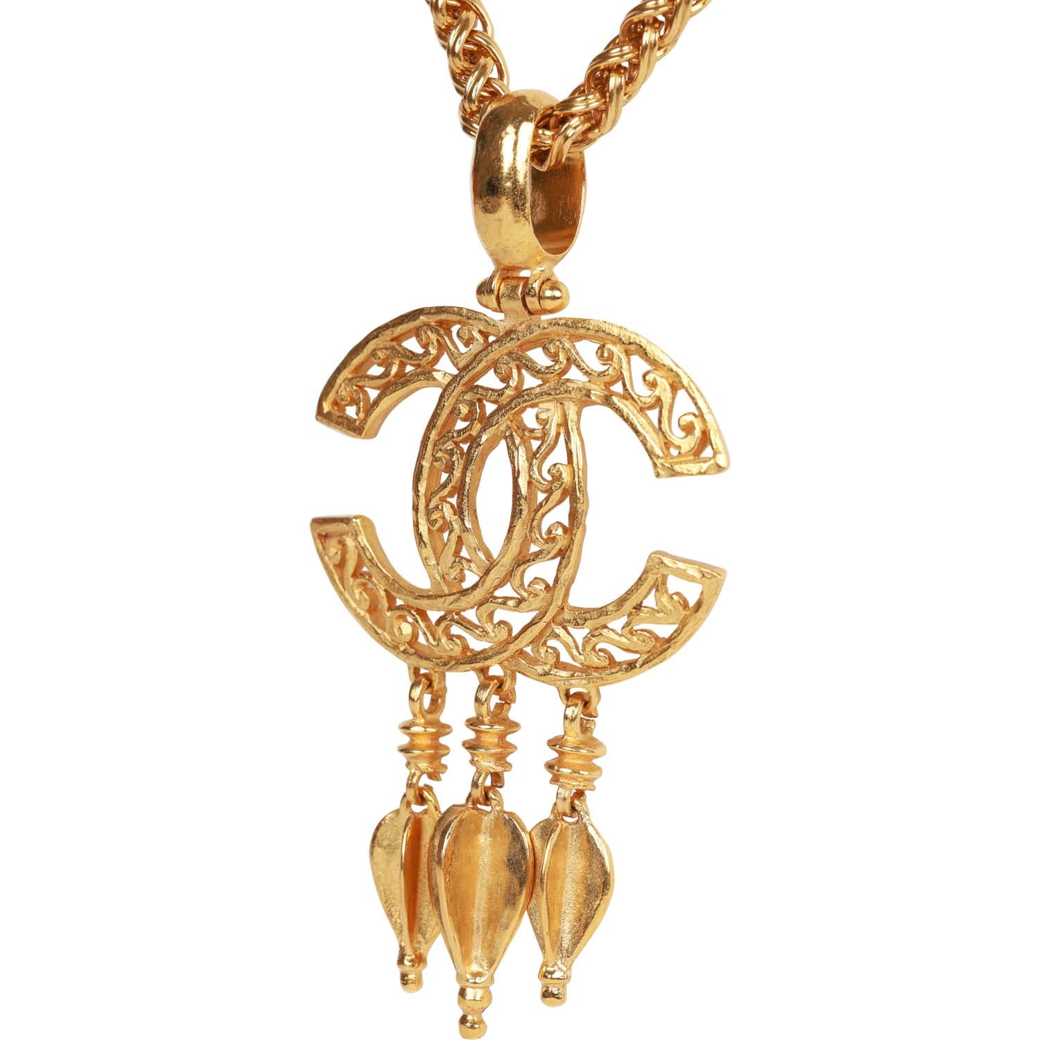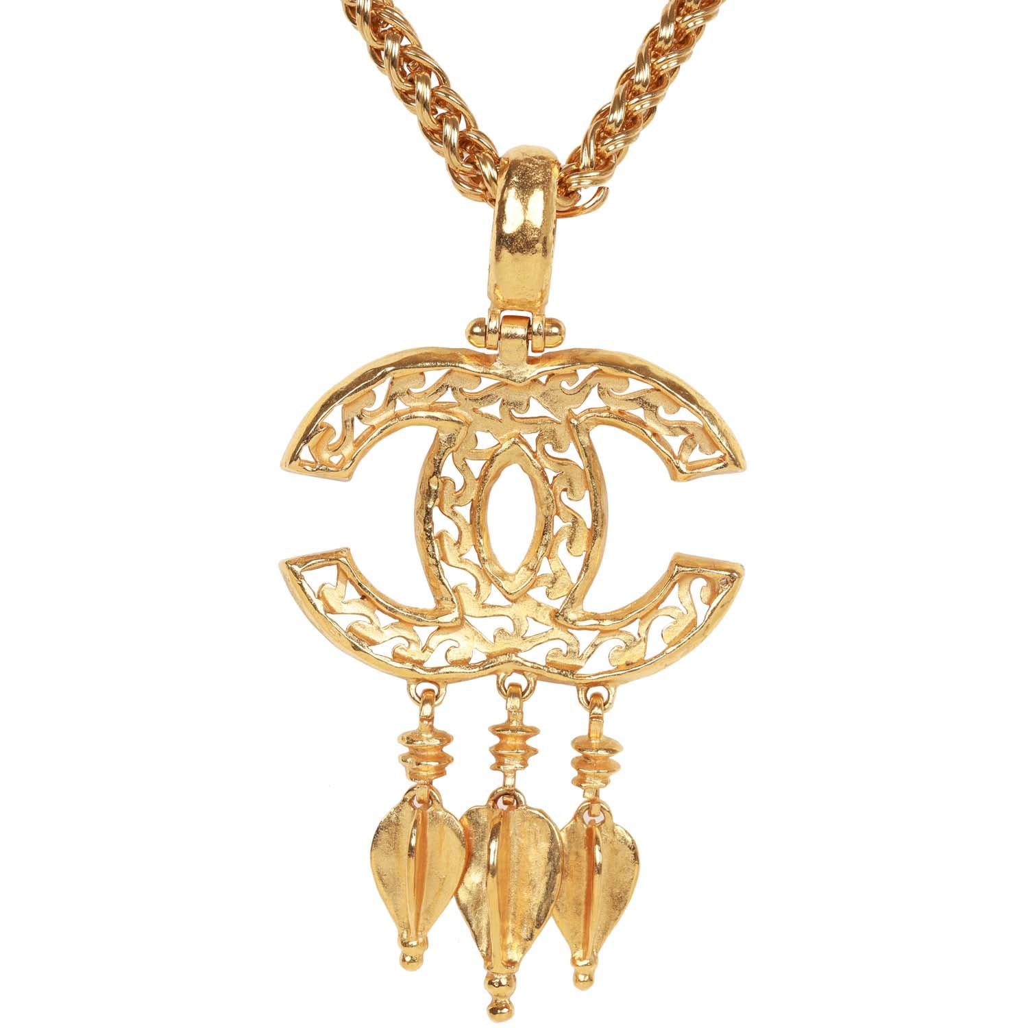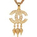 Vintage Chanel Gold Plated Fringe CC Pendant Necklace