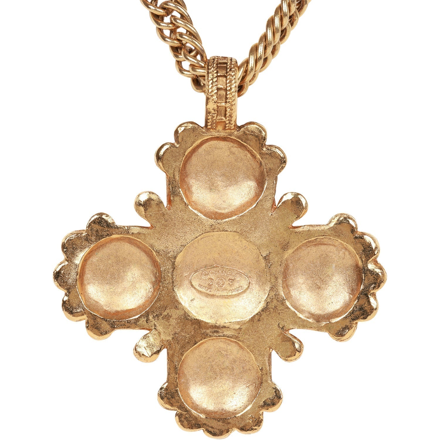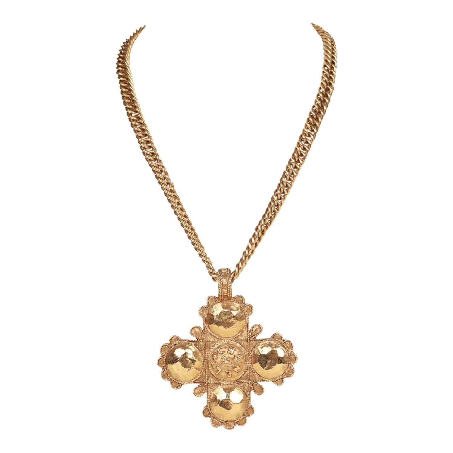 Vintage Chanel Gold Plated Lion Cross Pendant Necklace