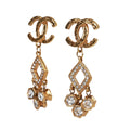 Vintage Chanel 24K Gold Plated Textured CC and Rhinestone Chandelier Clip Earrings