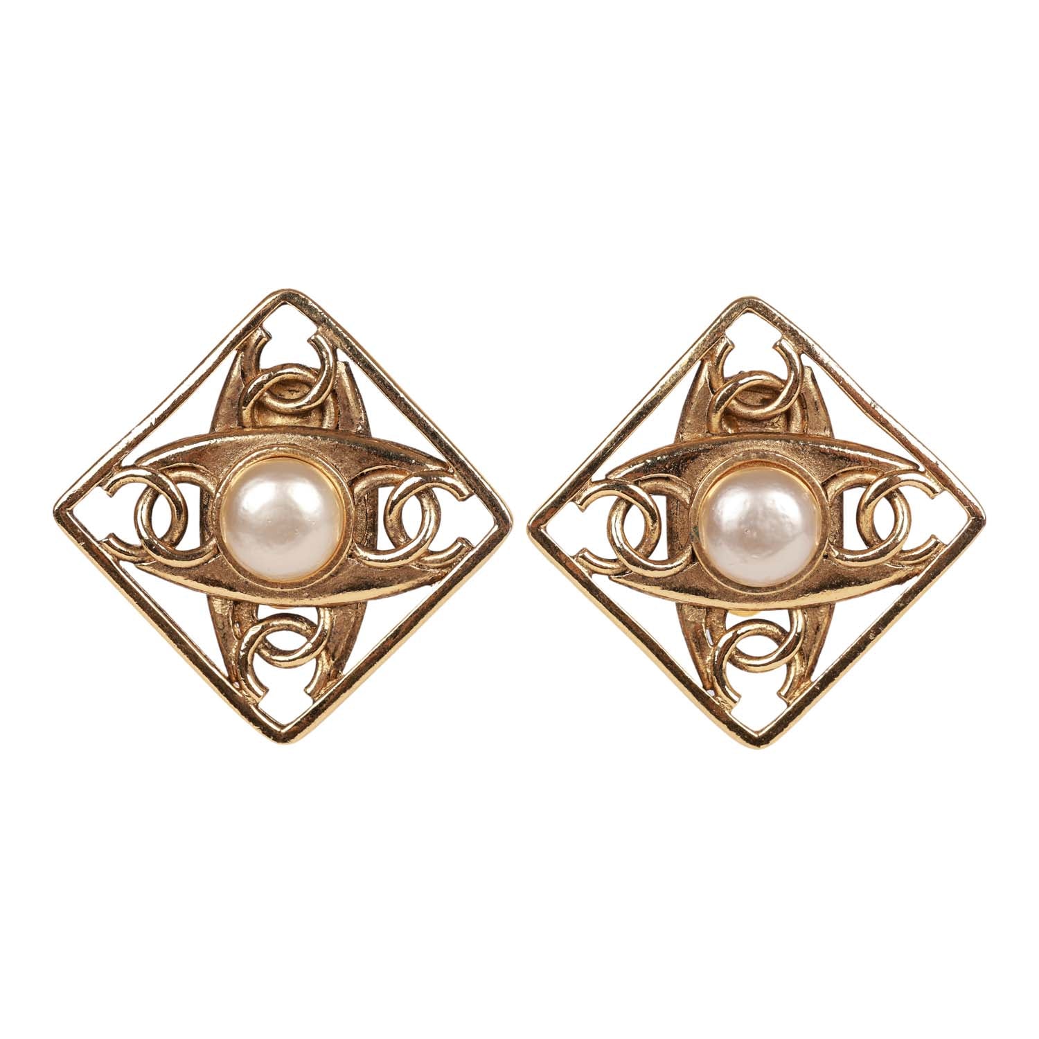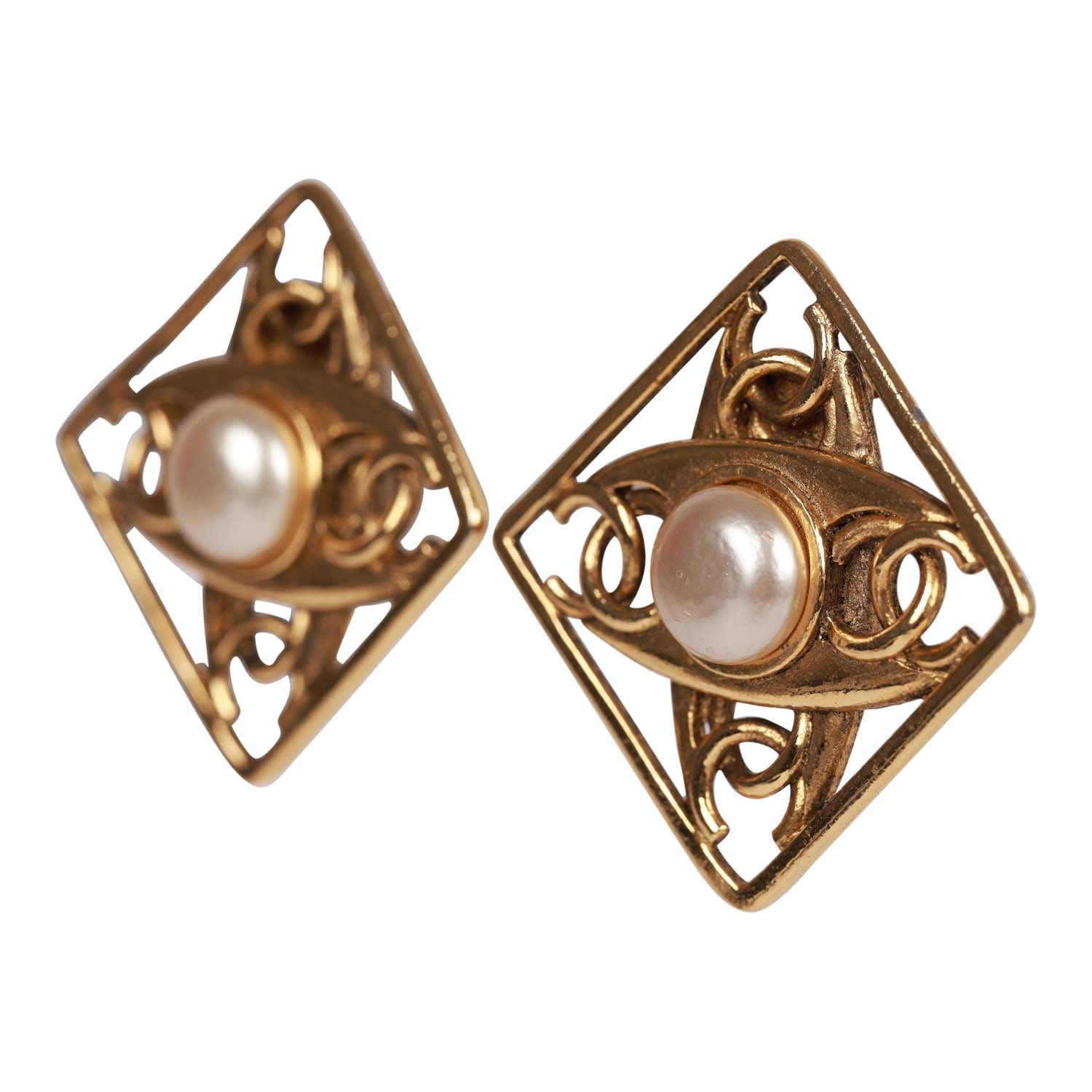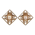 Vintage Chanel 24K Gold Plated CC Square Pearl Earrings