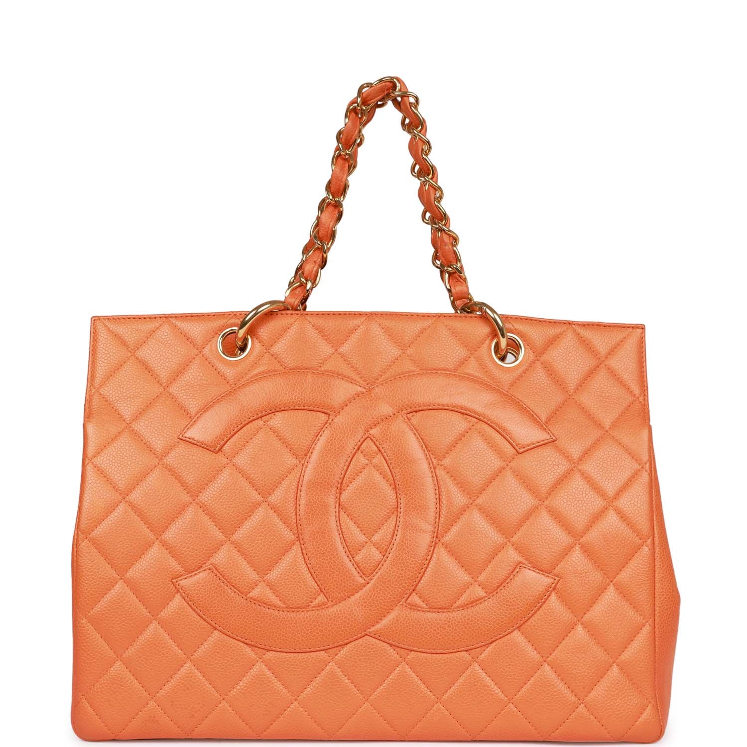 Vintage Chanel Grand CC Timeless Tote Bag Orange Caviar Gold Hardware