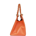 This Vintage Grand CC Timeless Tote Bag is in Orange caviar with gold hardware and features a  signature CC embossed logo on the front, an open top, and two interwoven gold plated chain link and Orange leather shoulder straps.