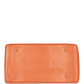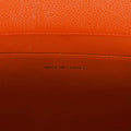 The interior is lined in Orange leather and includes one zip pocket on the rear wall and one open slip pocket on the opposite wall.