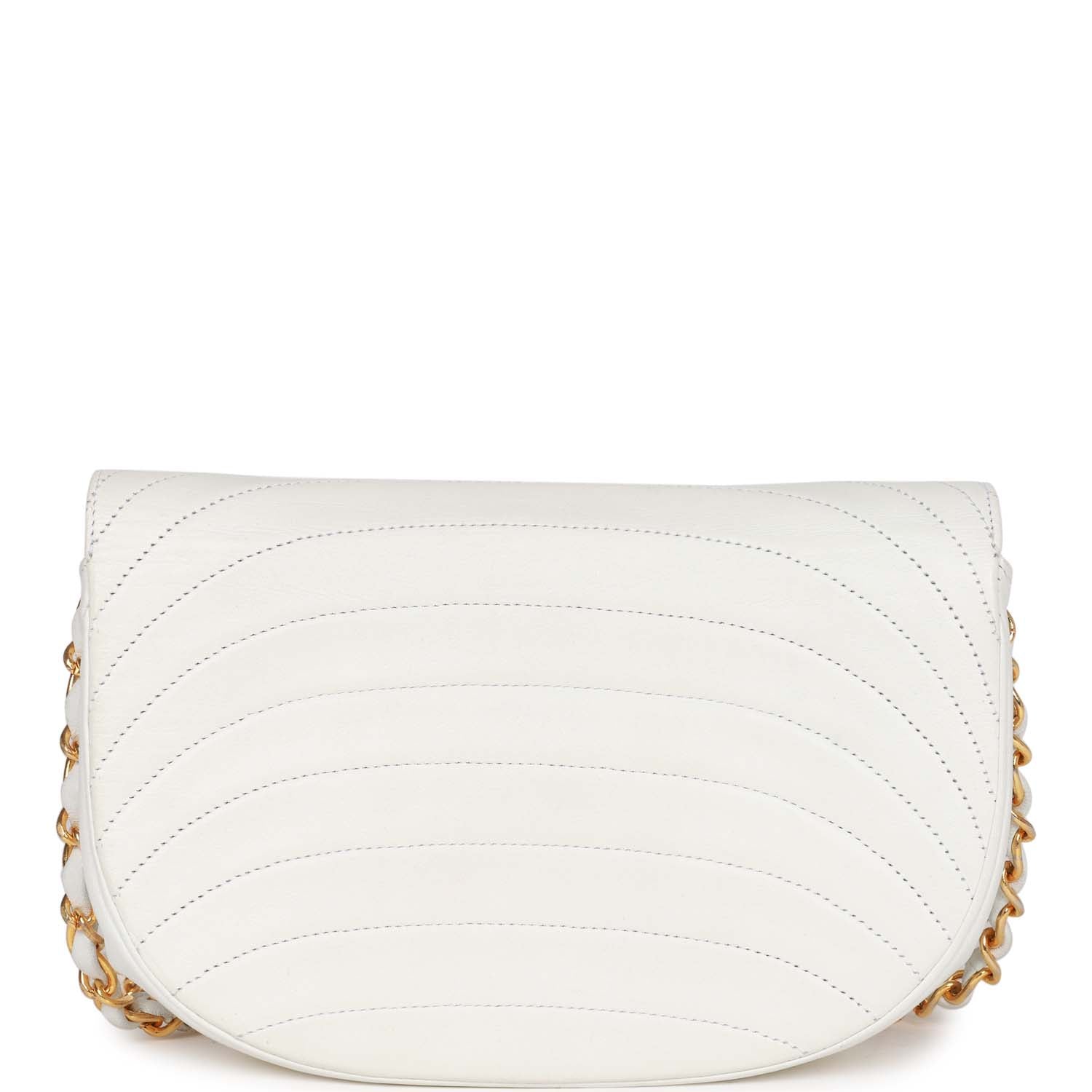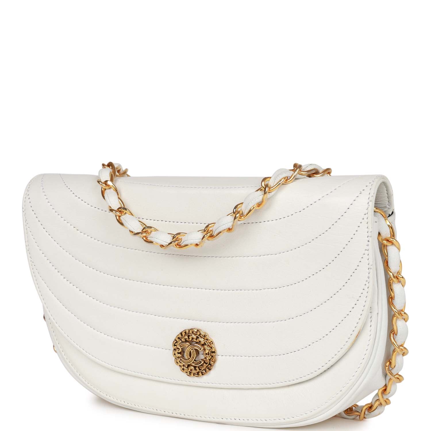 Vintage Chanel Half Moon Shoulder Bag White Lambskin Gold Hardware
