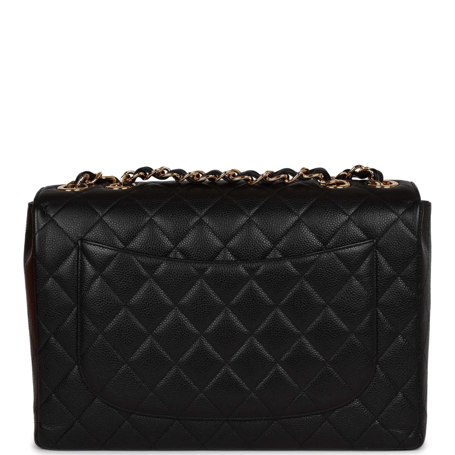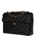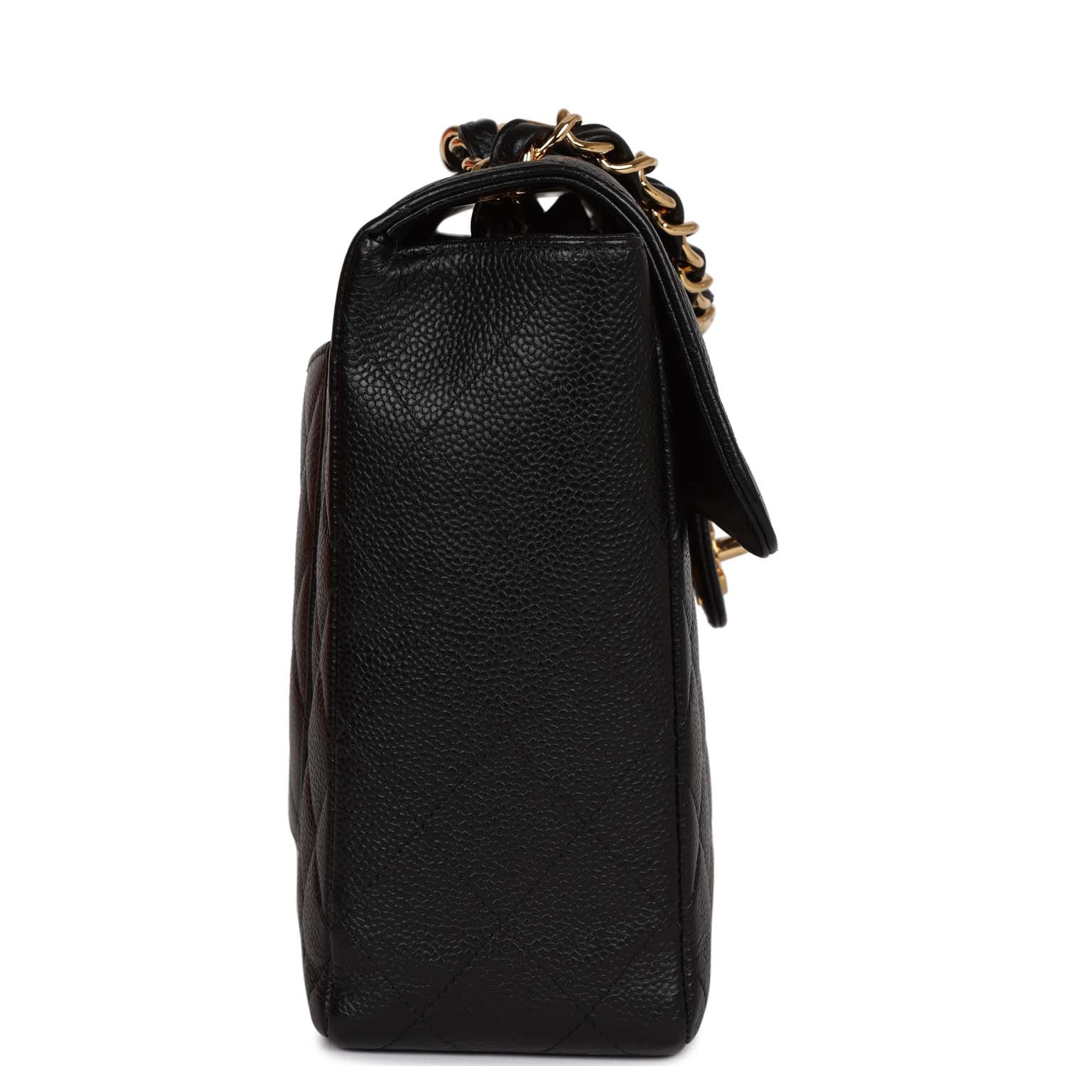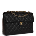 Vintage Chanel Jumbo Classic Single Flap Bag Black Caviar Gold Hardware
