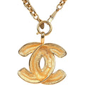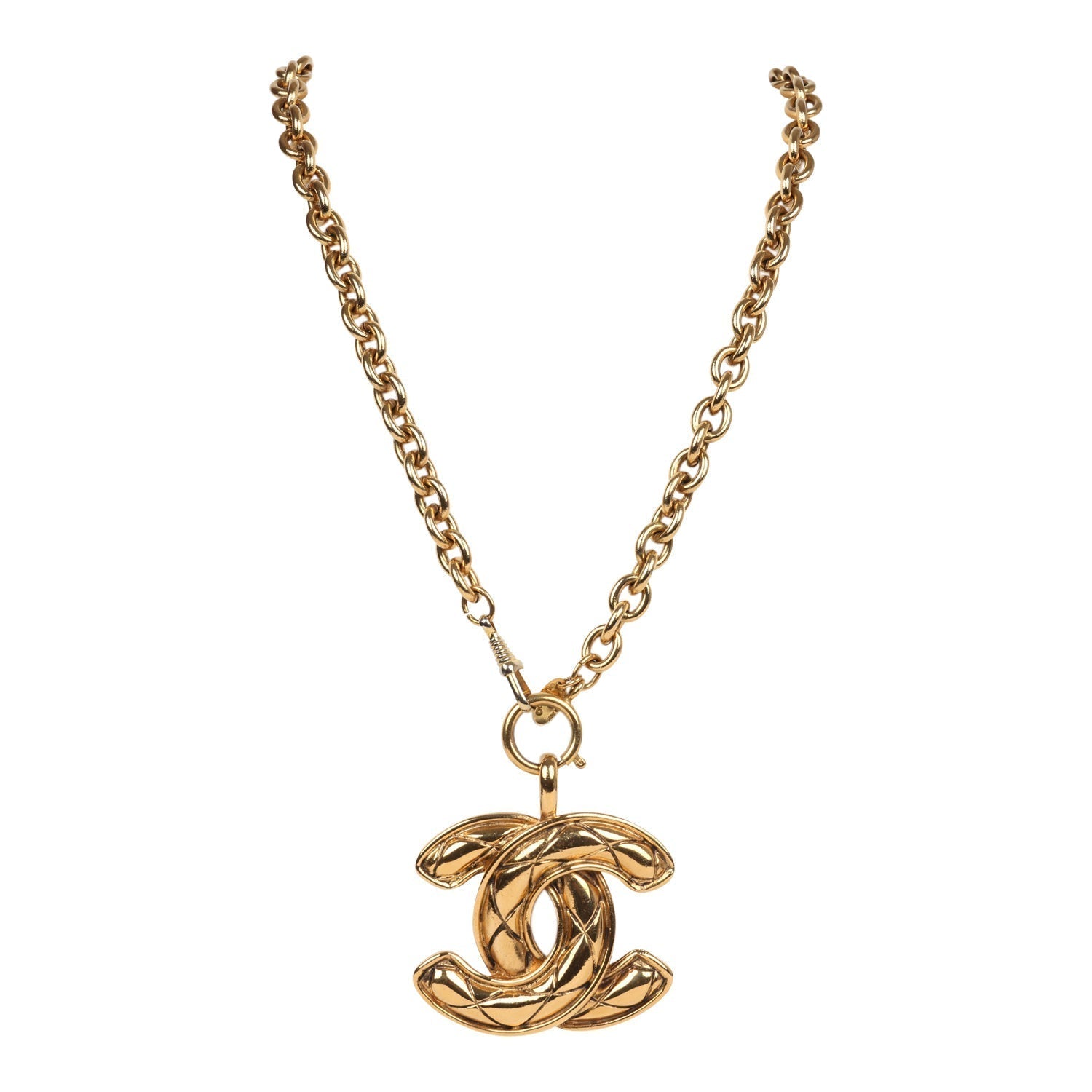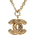 Vintage Chanel 24K Gold Plated Large CC Quilted Pendant Necklace